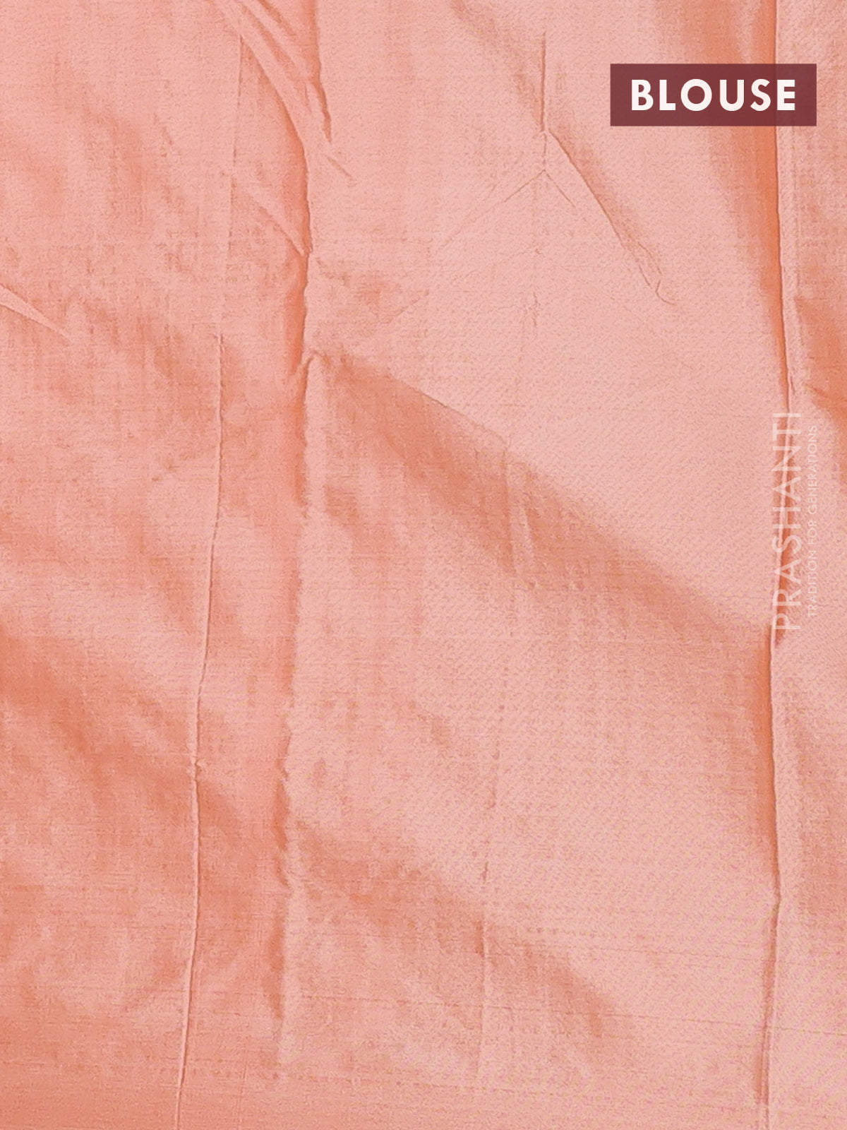 Arani semi silk saree pale orange with allover silver zari weaves in borderless style