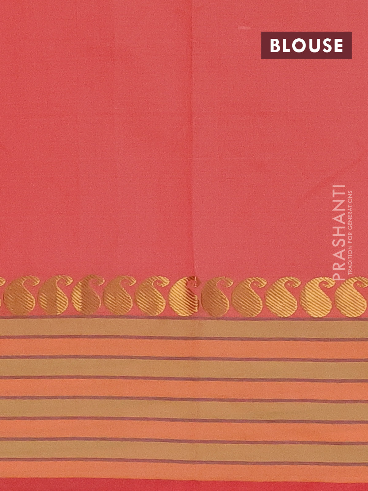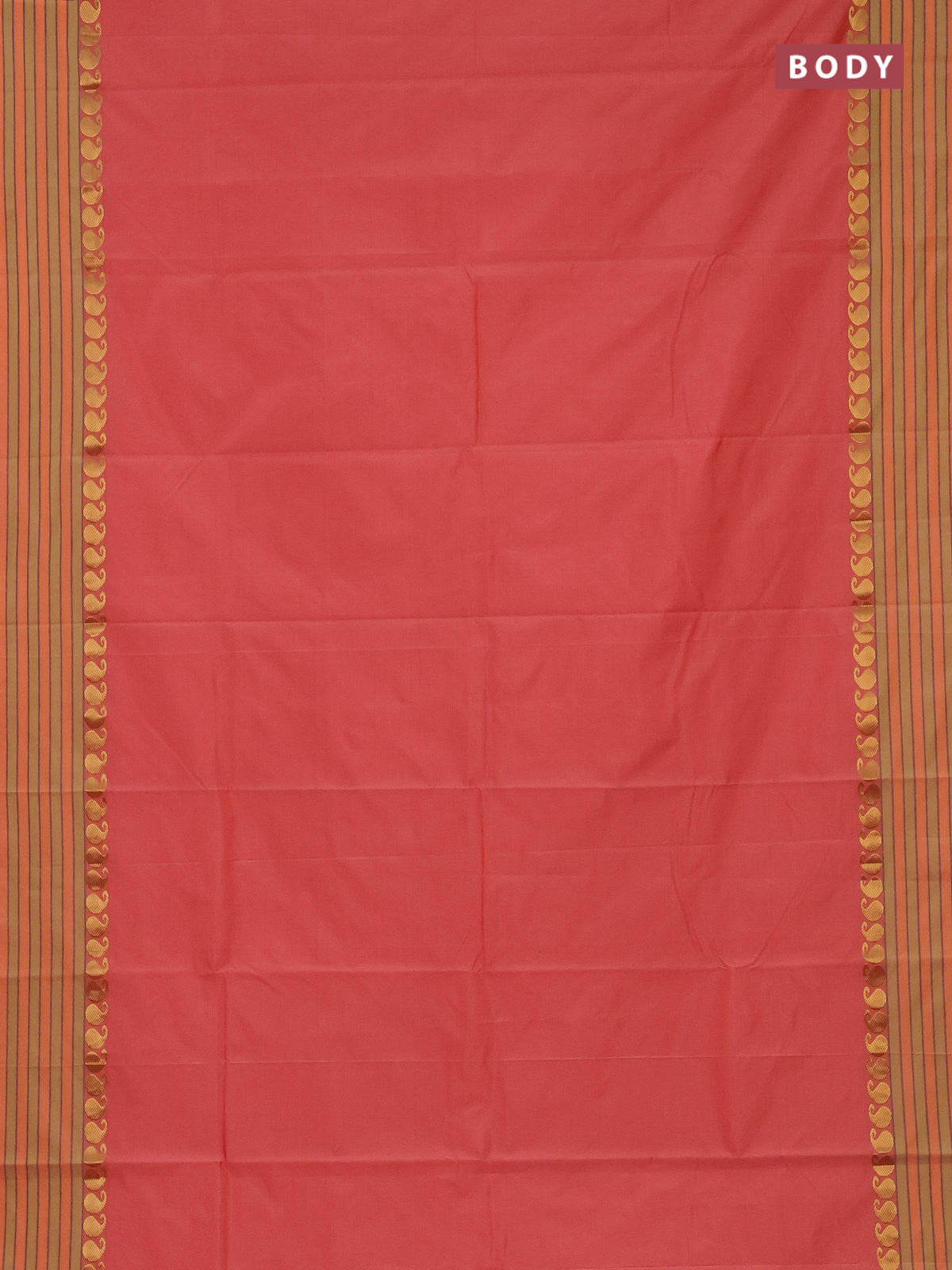 Arani semi silk saree peach orange and yellow shade with plain body and paisley zari woven simple border