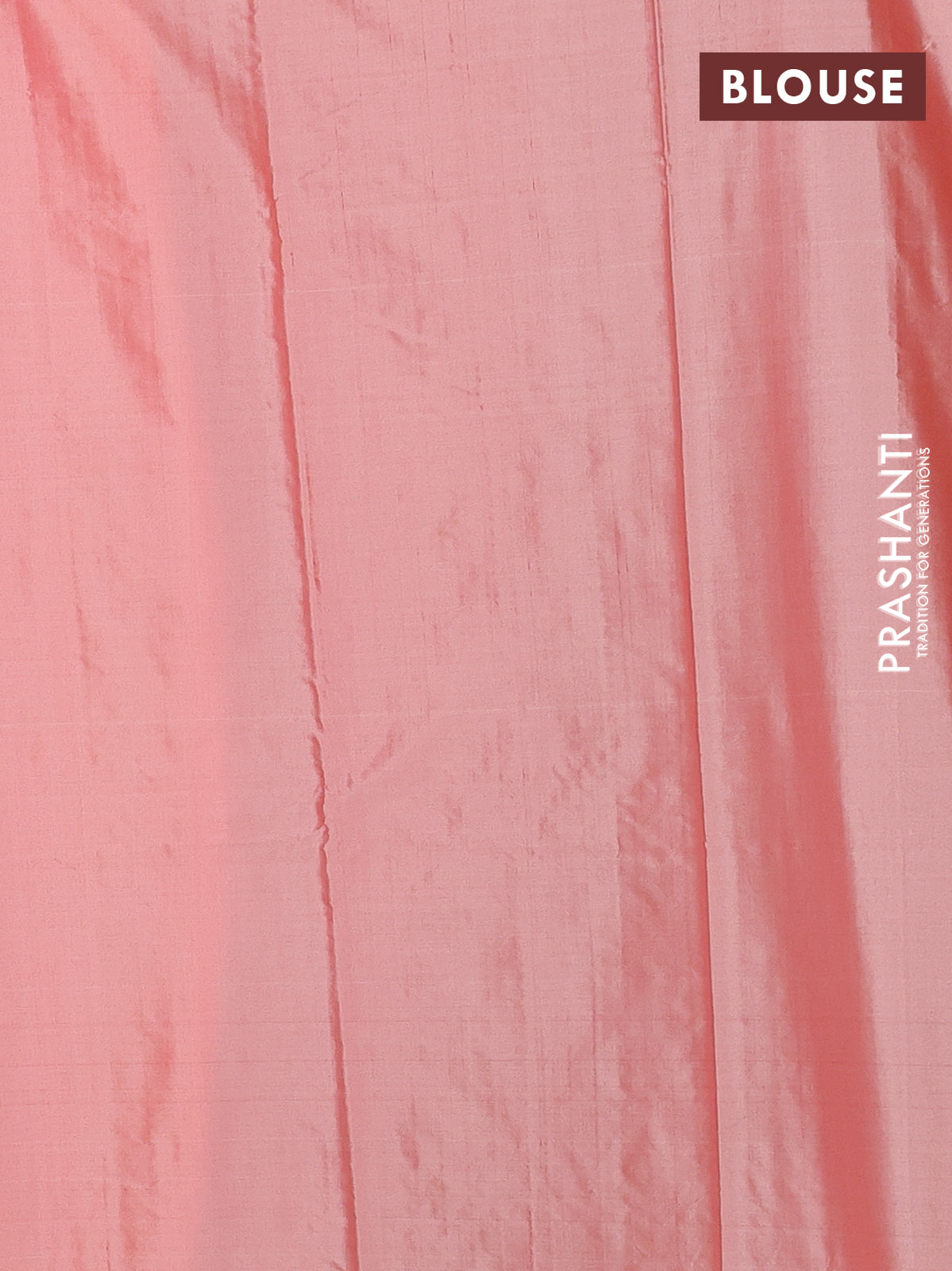 Arani semi silk saree peach shade with allover thread weaves in borderless style