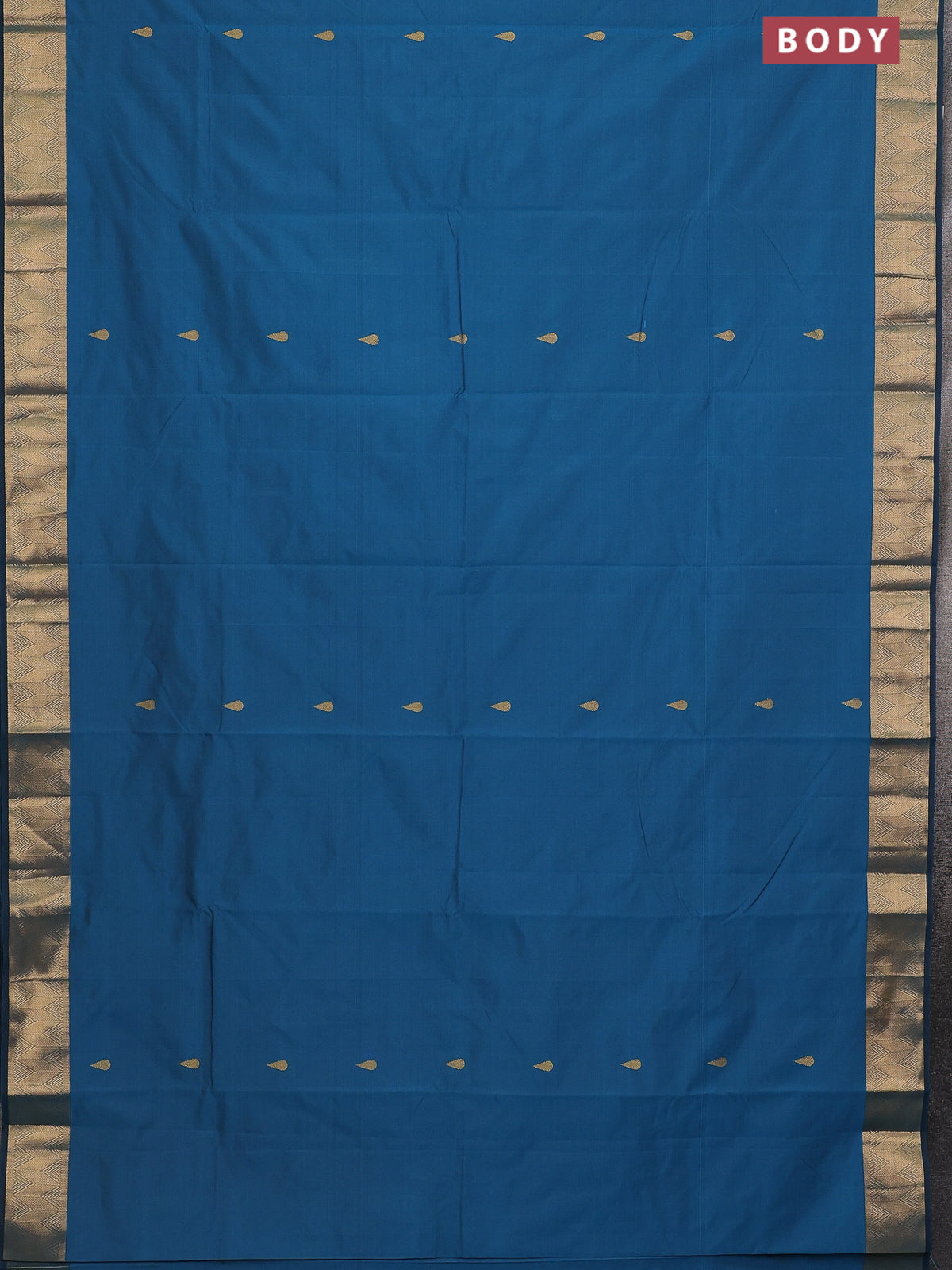 Arani semi silk saree peacock blue with zari woven thilak buttas and zari woven border