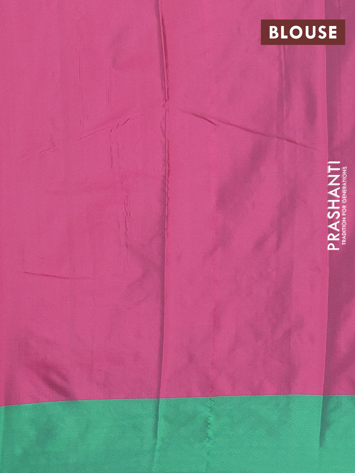 Arani semi silk saree pink and green with allover copper zari checked pattern and copper zari woven simple border
