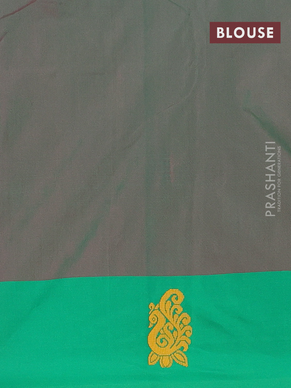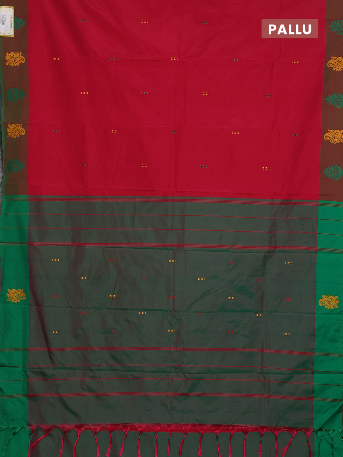 Arani semi silk saree reddish pink and dual shade of green with thread woven buttas and thread woven butta border