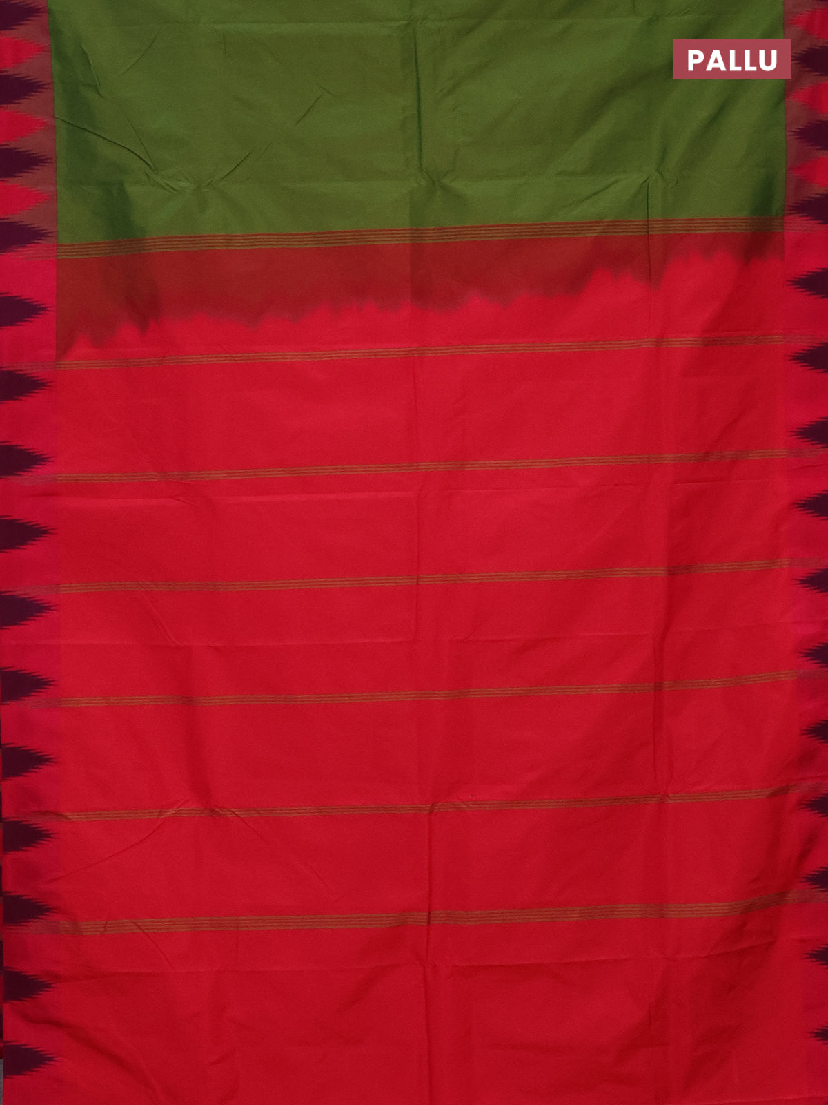 Arani semi silk saree sap green and dual shade of pink with plain body and temple design border