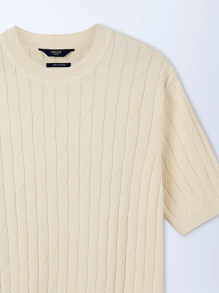 Ascot Beige Knit-Textured Relaxed-Fit Cotton T-Shirt