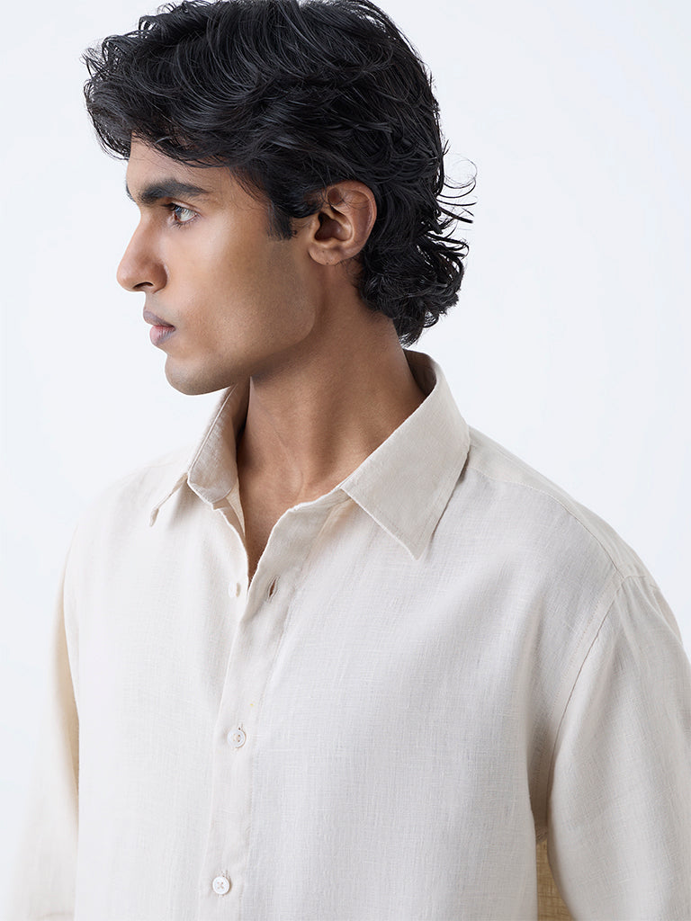 Ascot Cream Solid Relaxed-Fit Linen Shirt