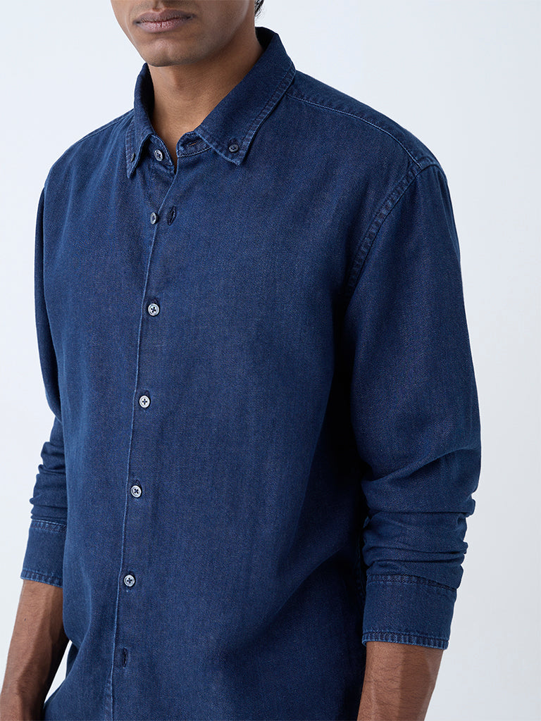 A smart take on casual staples, this dark blue denim shirt from Ascot blends classic styling with everyday ease. The button-down collar and full sleeves offer a nod to tailored classics, while the breathable fabric and relaxed silhouette ensure modern comfort.