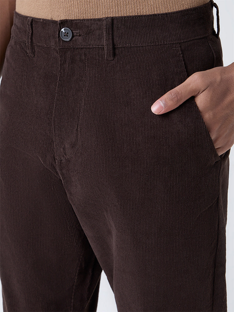 Ascot Dark Brown Mid-Rise Relaxed-Fit Corduroy Chinos