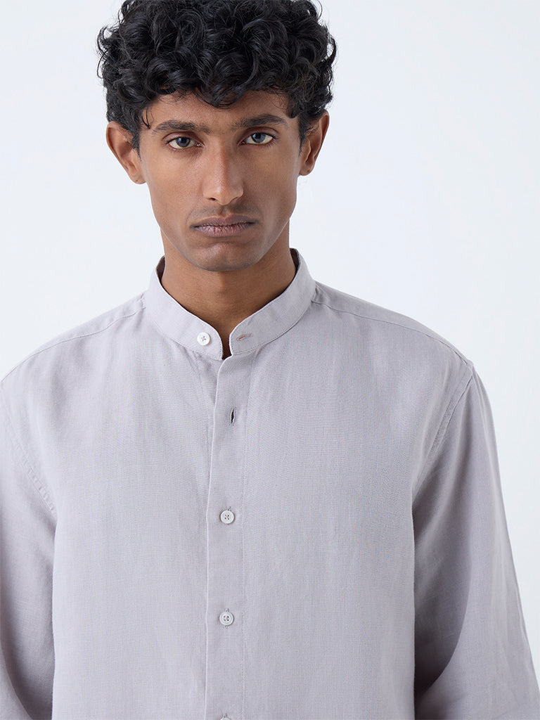 Timeless and versatile, this grey shirt from Ascot is tailored from a premium linen-blend fabric in a relaxed frame. Styled with a mandarin-neck collar, button-up front and full sleeves, it delivers quiet sophistication, making it an effortless choice for smart-casual occasions.