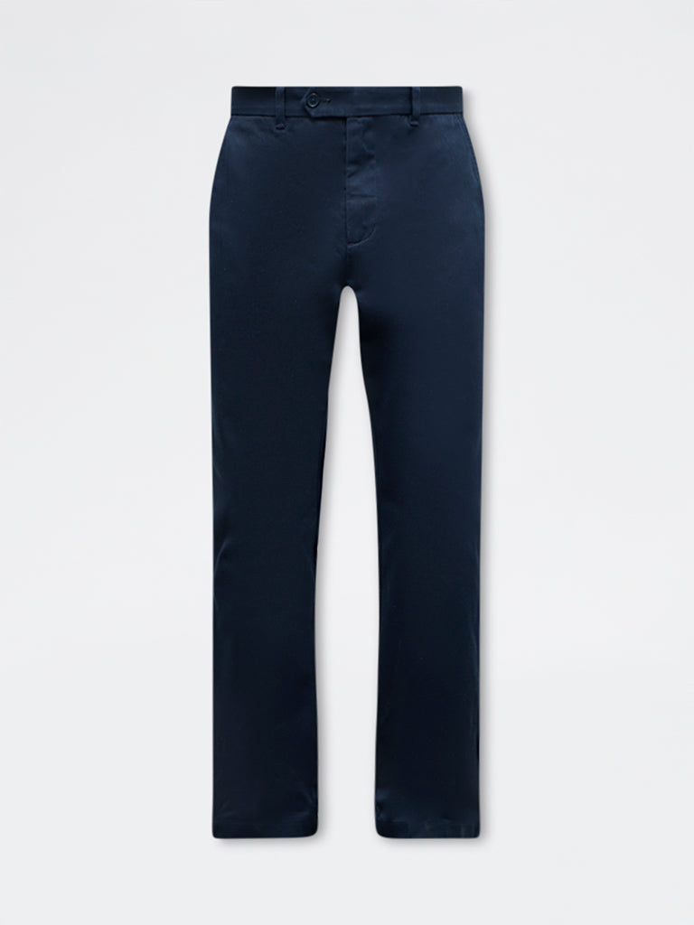 These navy trousers from Ascot are designed in a relaxed frame with a mid-rise profile. They feature a buttoned waist, zipper fly, belt loops, and a classic five-pocket construction for everyday functionality. Milled from a breathable fabric, they offer a comfortable feel with a clean finish suited to regular wear.
