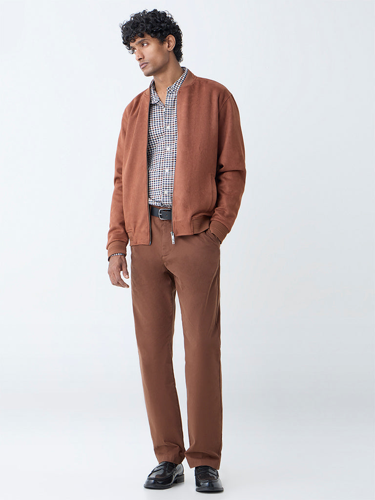 Ascot Rust Solid Relaxed-Fit Suede Jacket