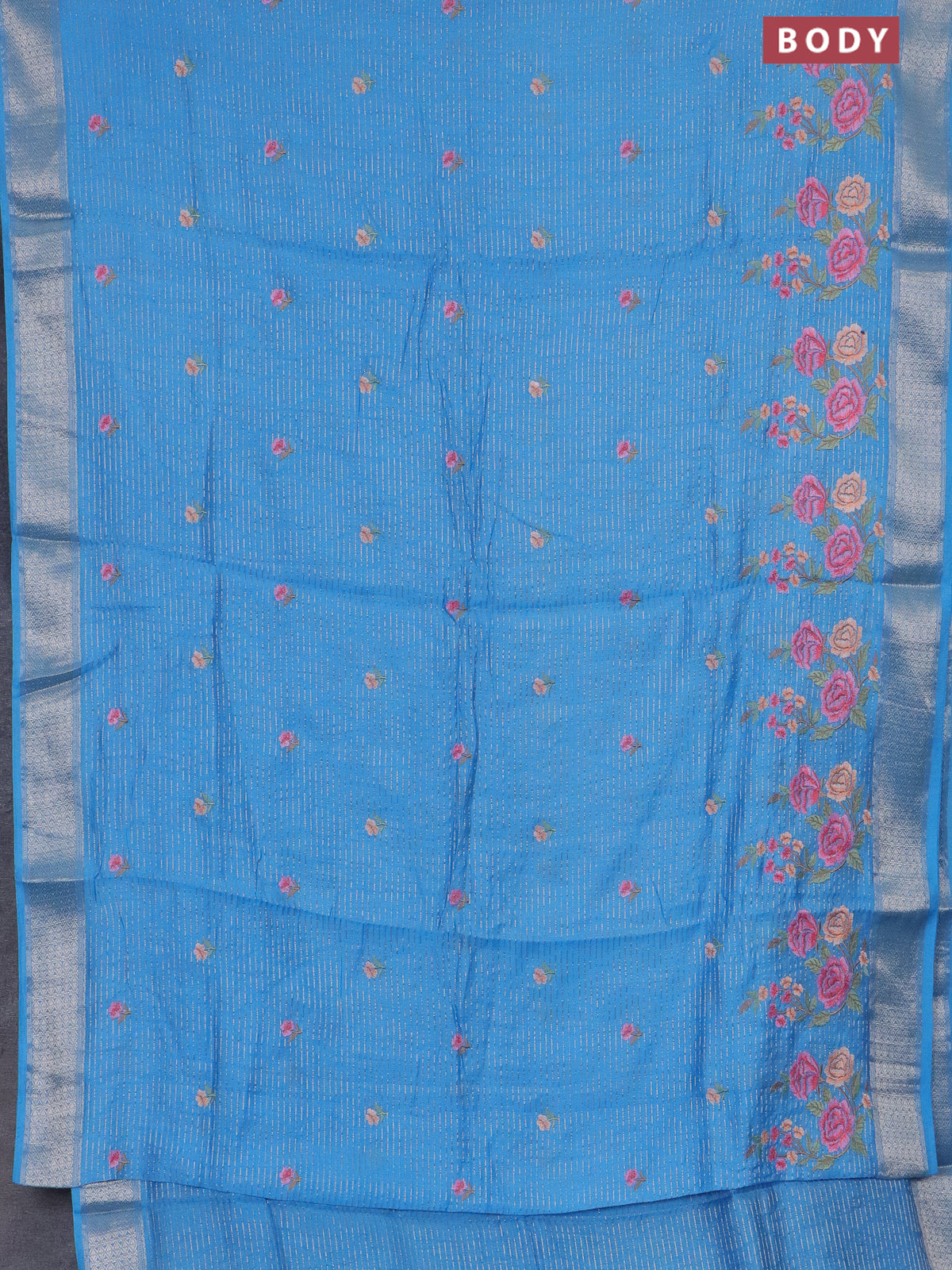 Assam silk saree light blue with allover zari weaves & floral embroidery work buttas and zari woven border