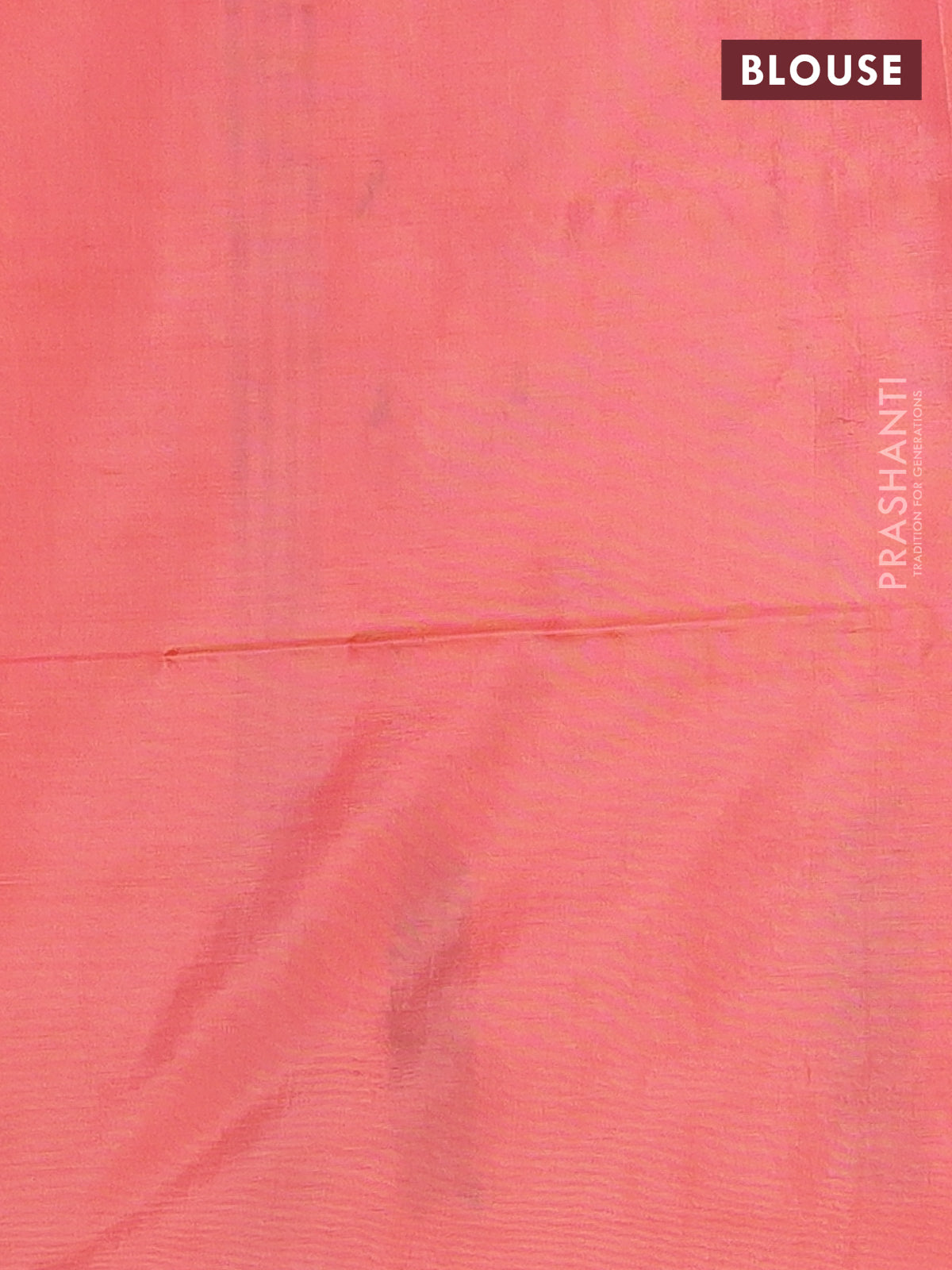 Banana pith saree purple and orange with thread woven buttas in borderless style