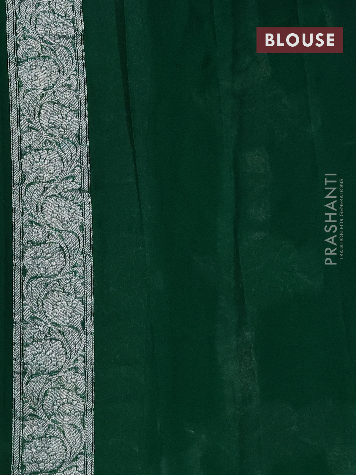 Banarasi chiffon silk saree dark green with silver zari woven buttas and silver zari woven border