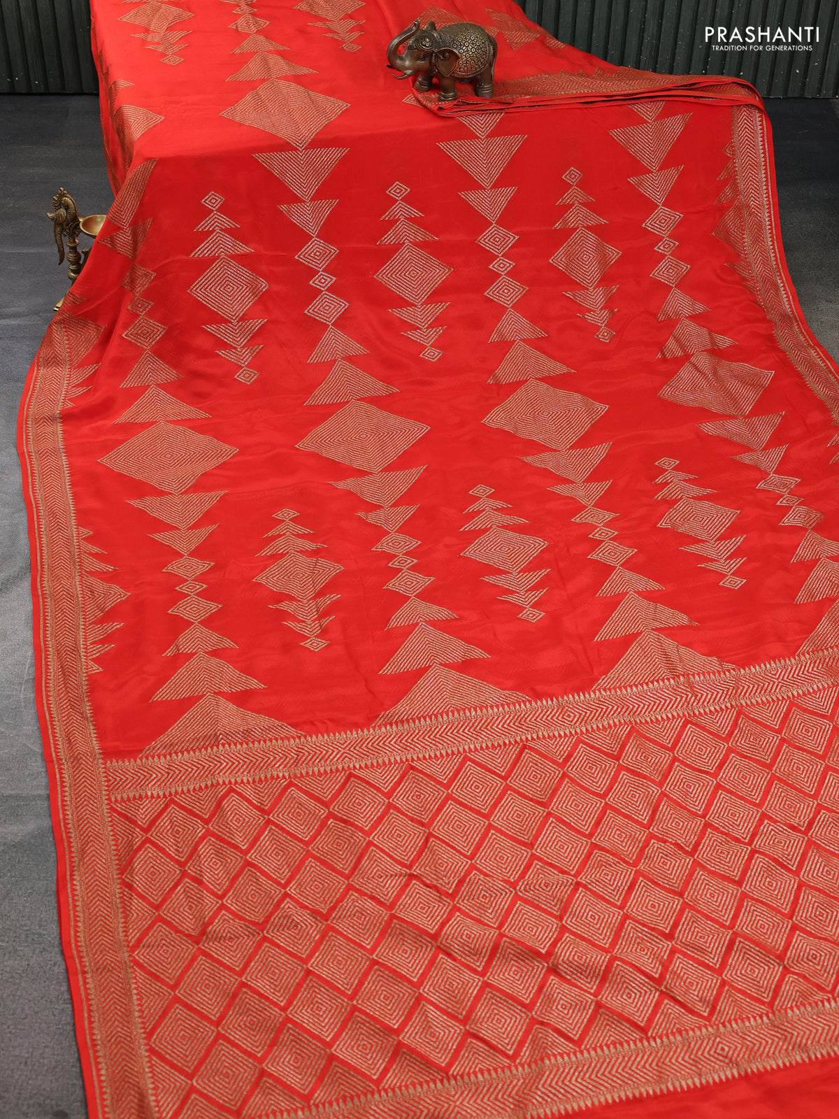 Banarasi crepe saree orange with allover geometric weaves and woven border