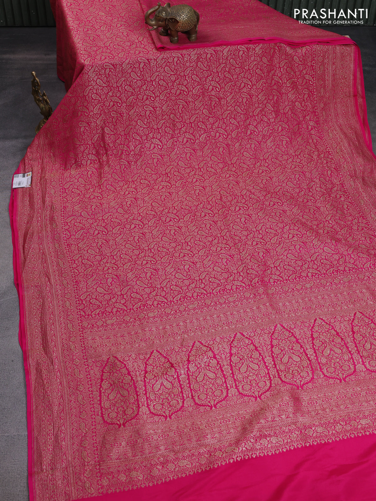 Banarasi crepe saree pink with allover thread & zari woven brocade weaves and woven border