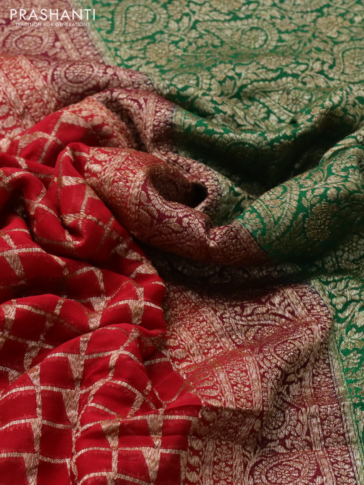 Banarasi georgette saree red and maroon green with allover thread weaves and woven border