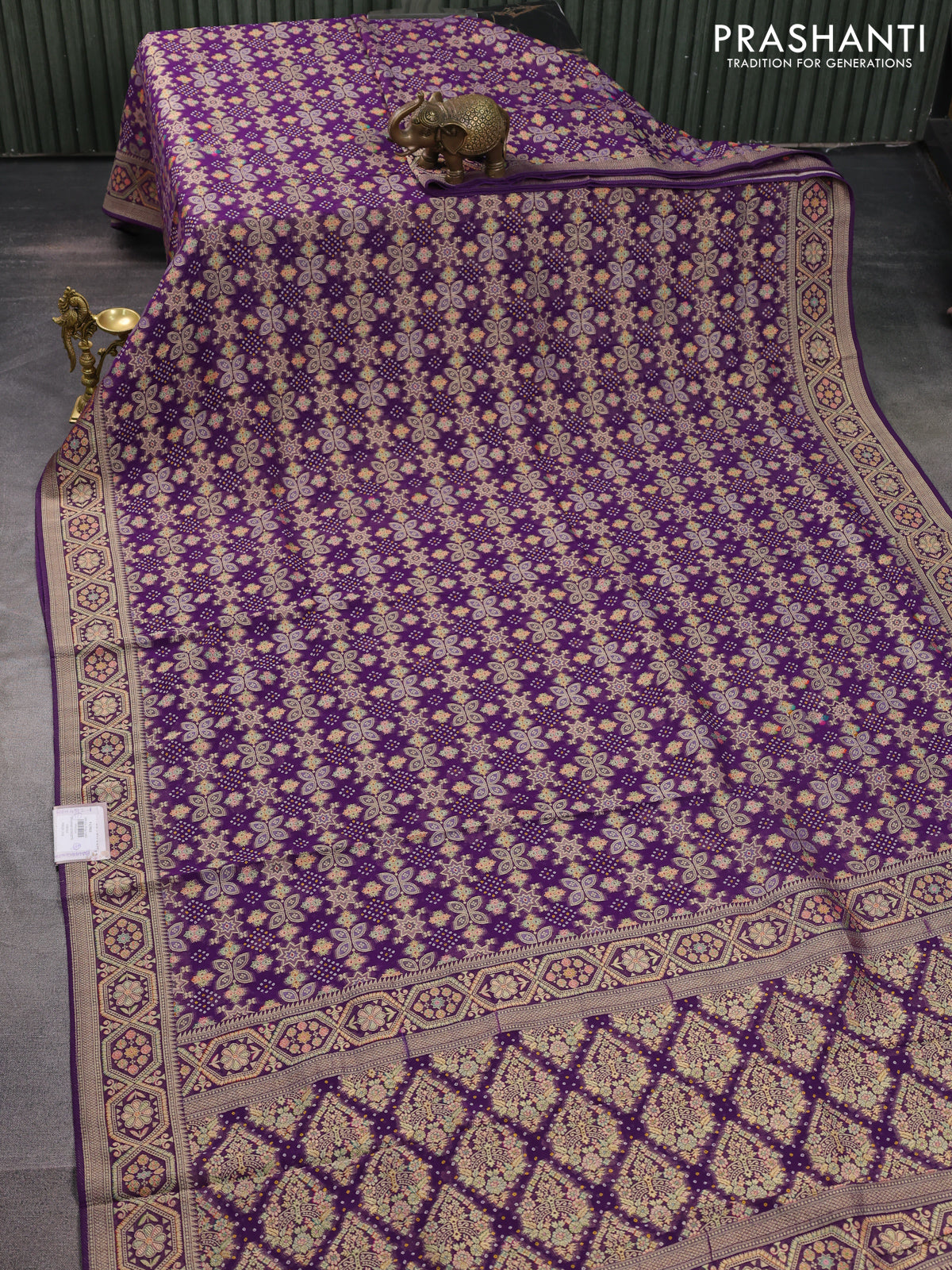 Banarasi georgette saree violet with bandhani prints & mina weaves
