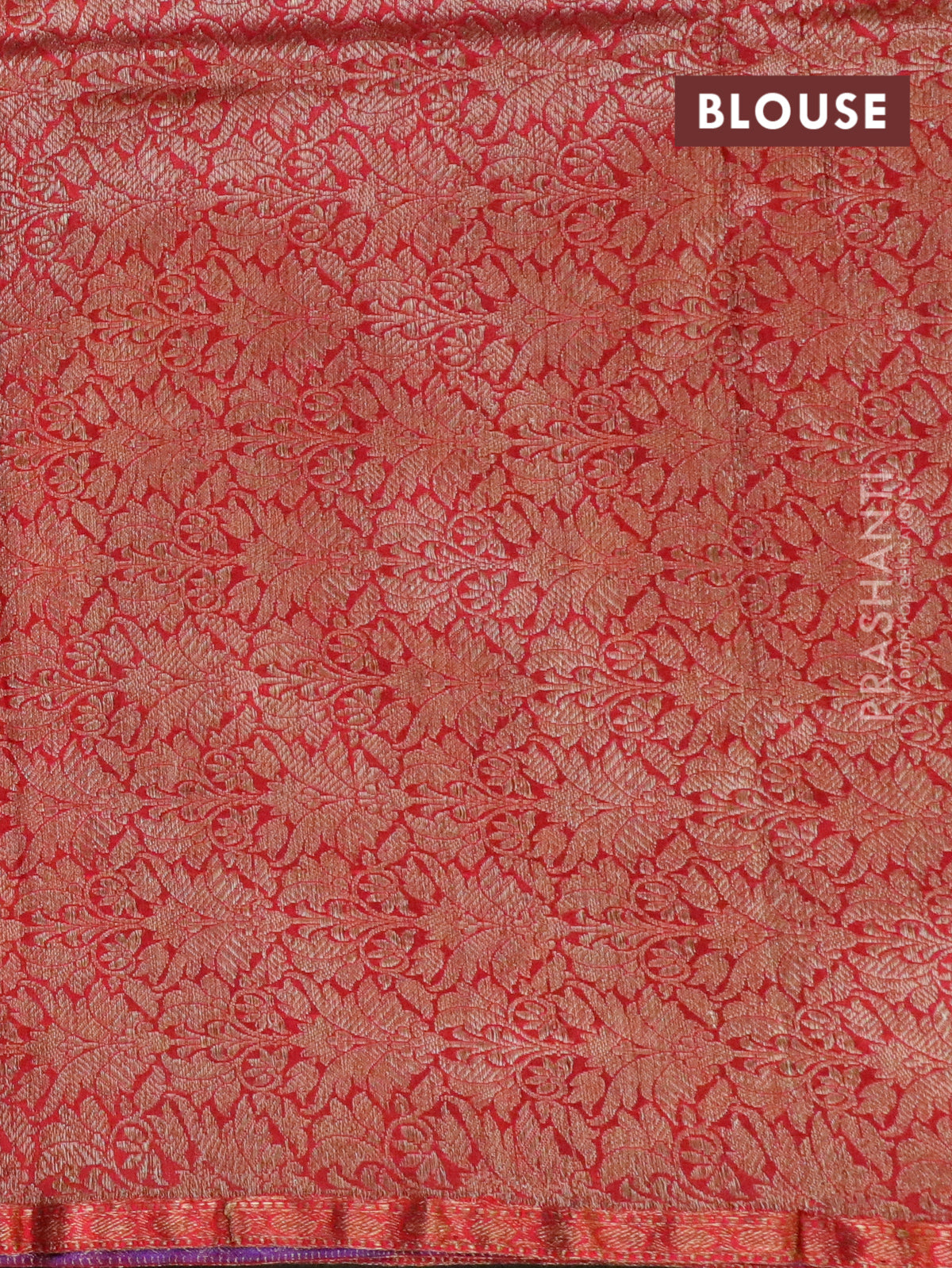 Banarasi katan silk saree blue and maroon with allover stripes woven buttas and small zari woven border