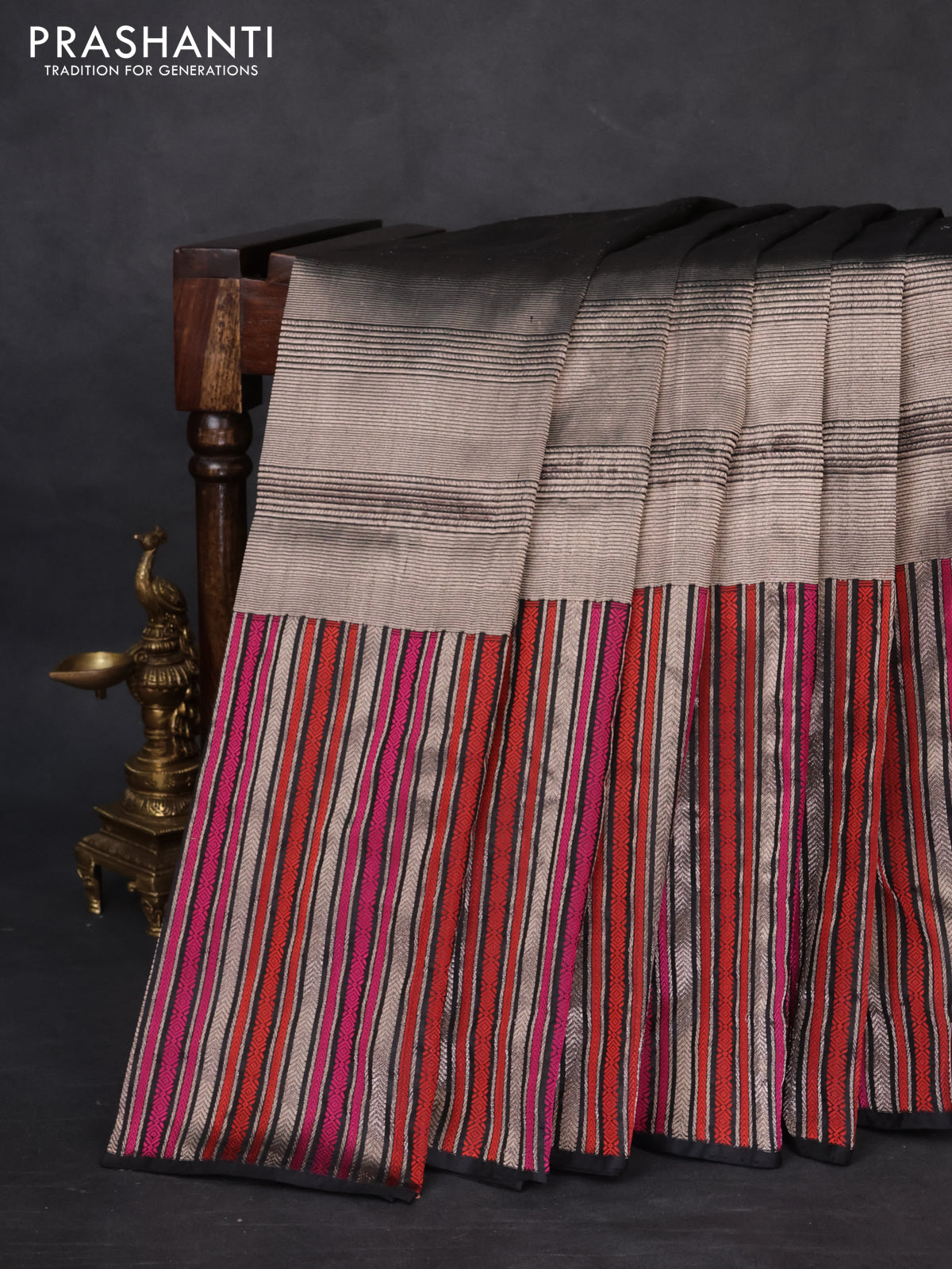 Banarasi katan tissue silk saree black with allover zari weaves and long thread & zari woven border