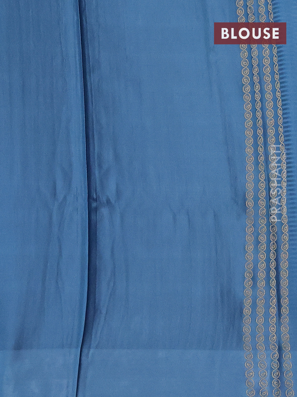 Banarasi mushru silk saree light blue with allover stripes pattern & zari weaves and satin border