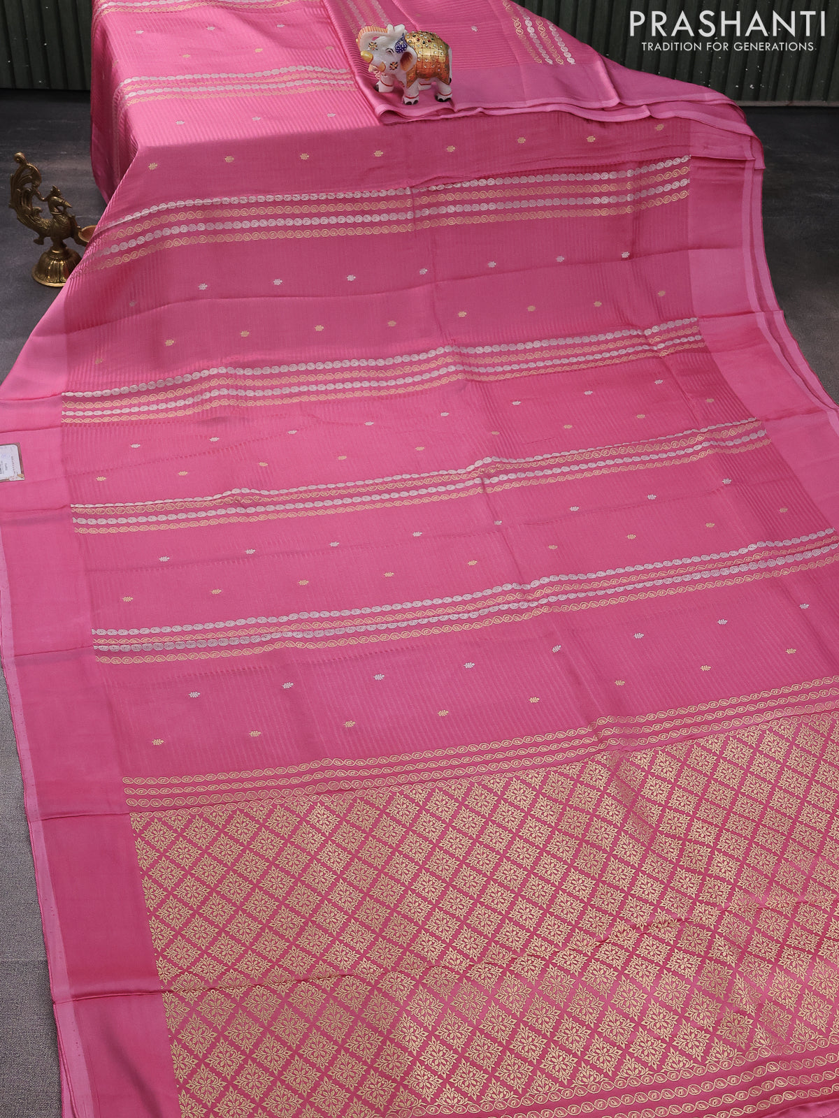 Banarasi mushru silk saree light pink with allover stripes pattern & zari weaves and satin border