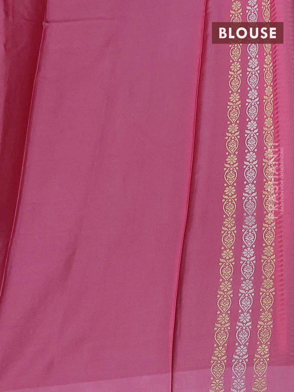 Banarasi mushru silk saree pink with allover stripes pattern & zari weaves and satin border
