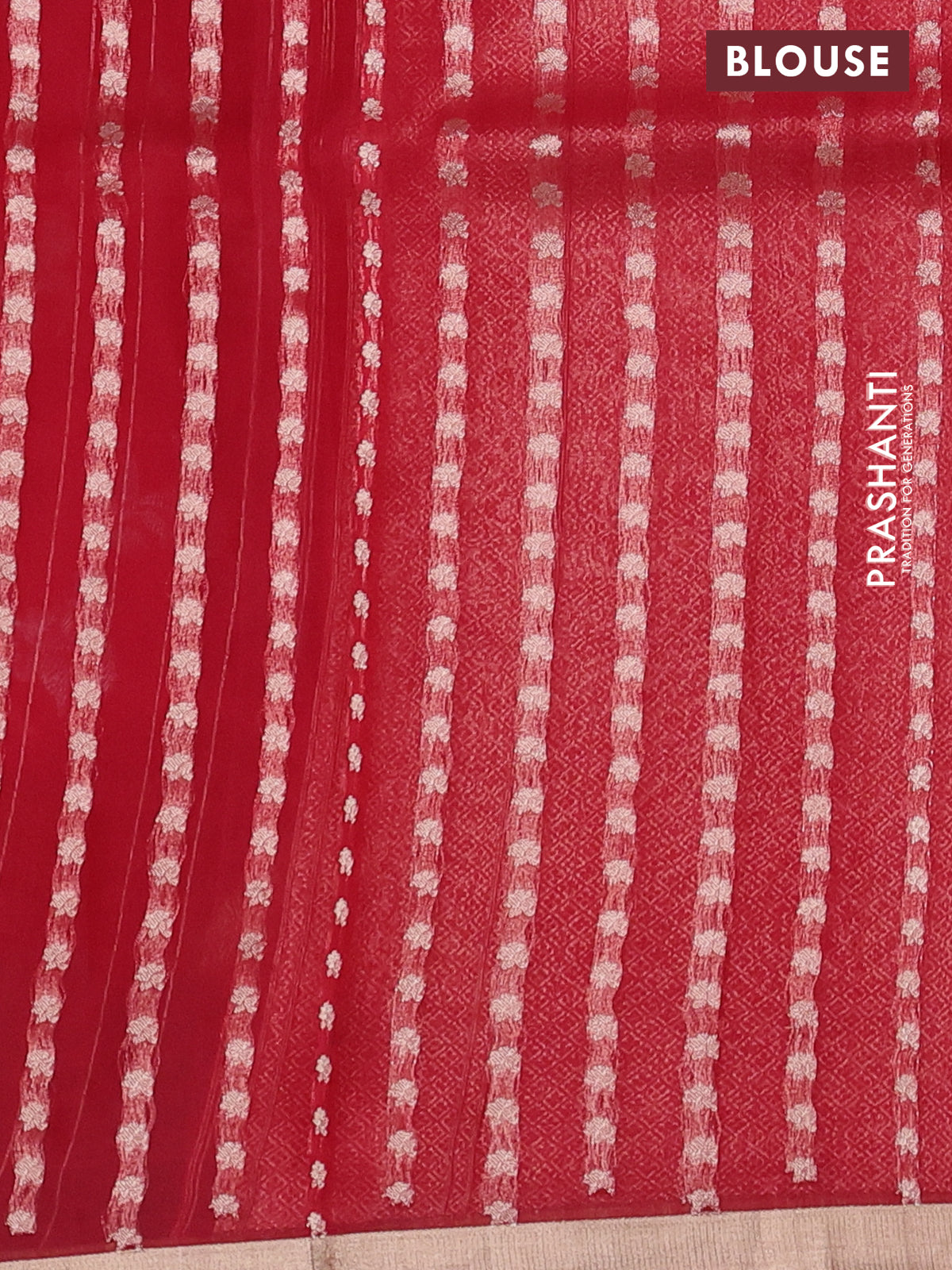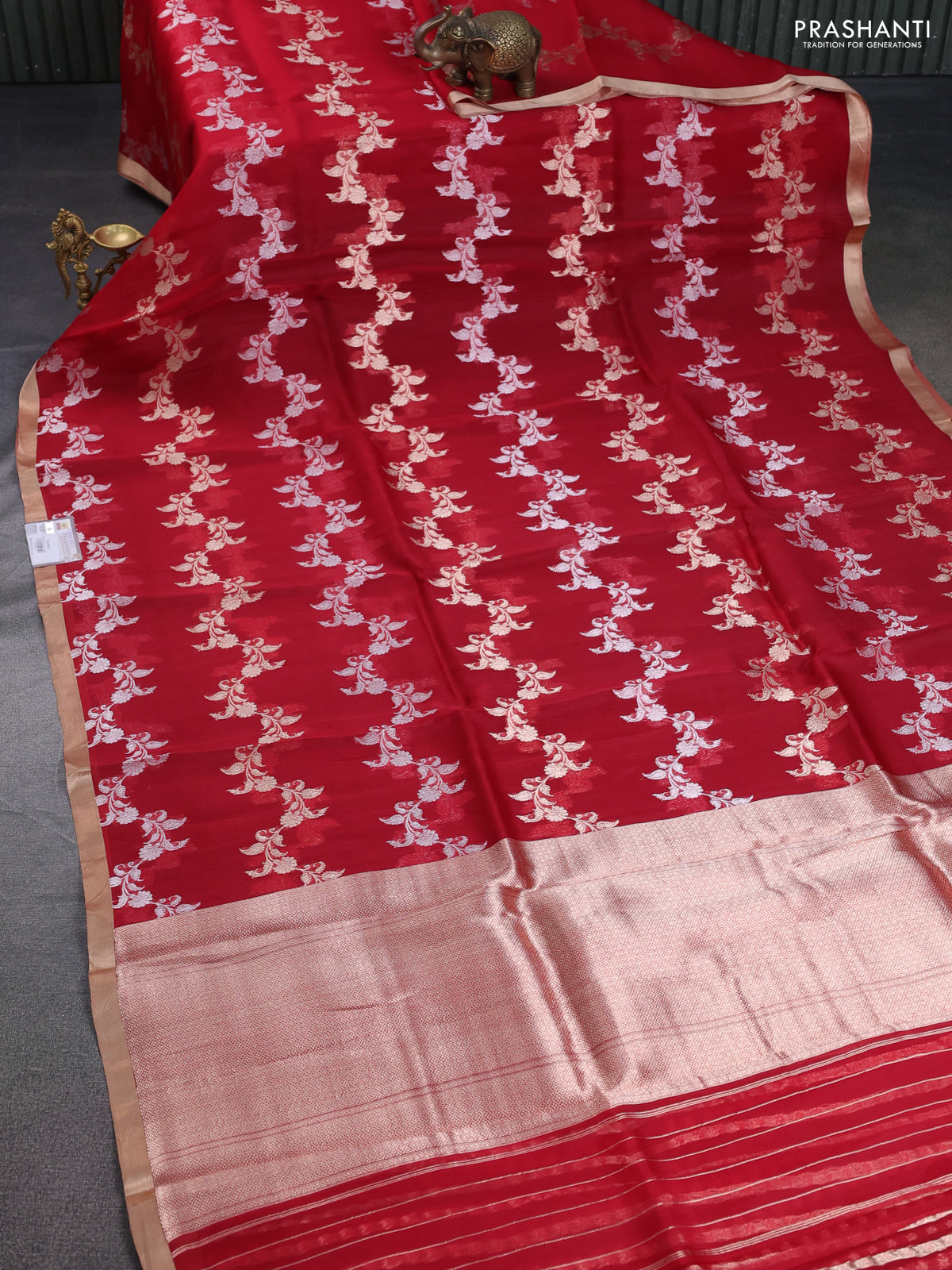 Banarasi organza silk saree maroon with allover silver & gold zari weaves and zari woven border