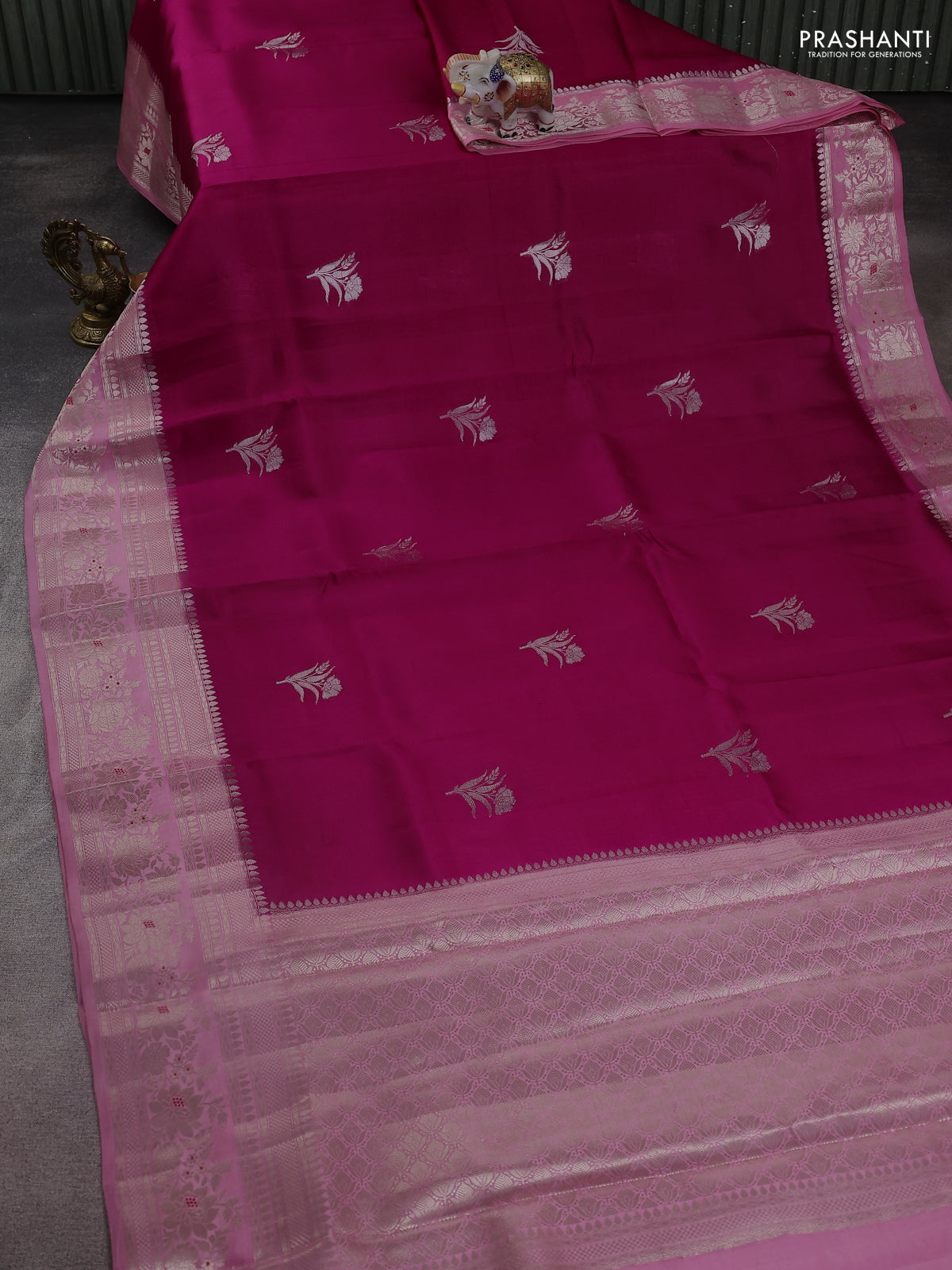 Banarasi poona silk saree dark pink and light pink with zari woven floral buttas and zari woven border