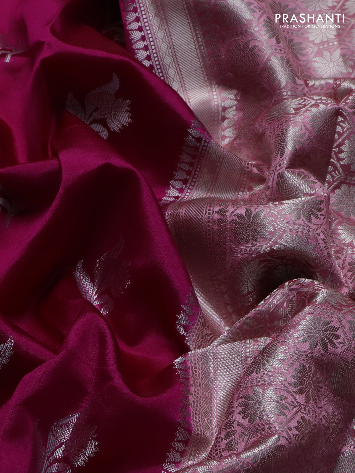 Banarasi poona silk saree dark pink and peach pink with zari woven floral buttas and zari woven border
