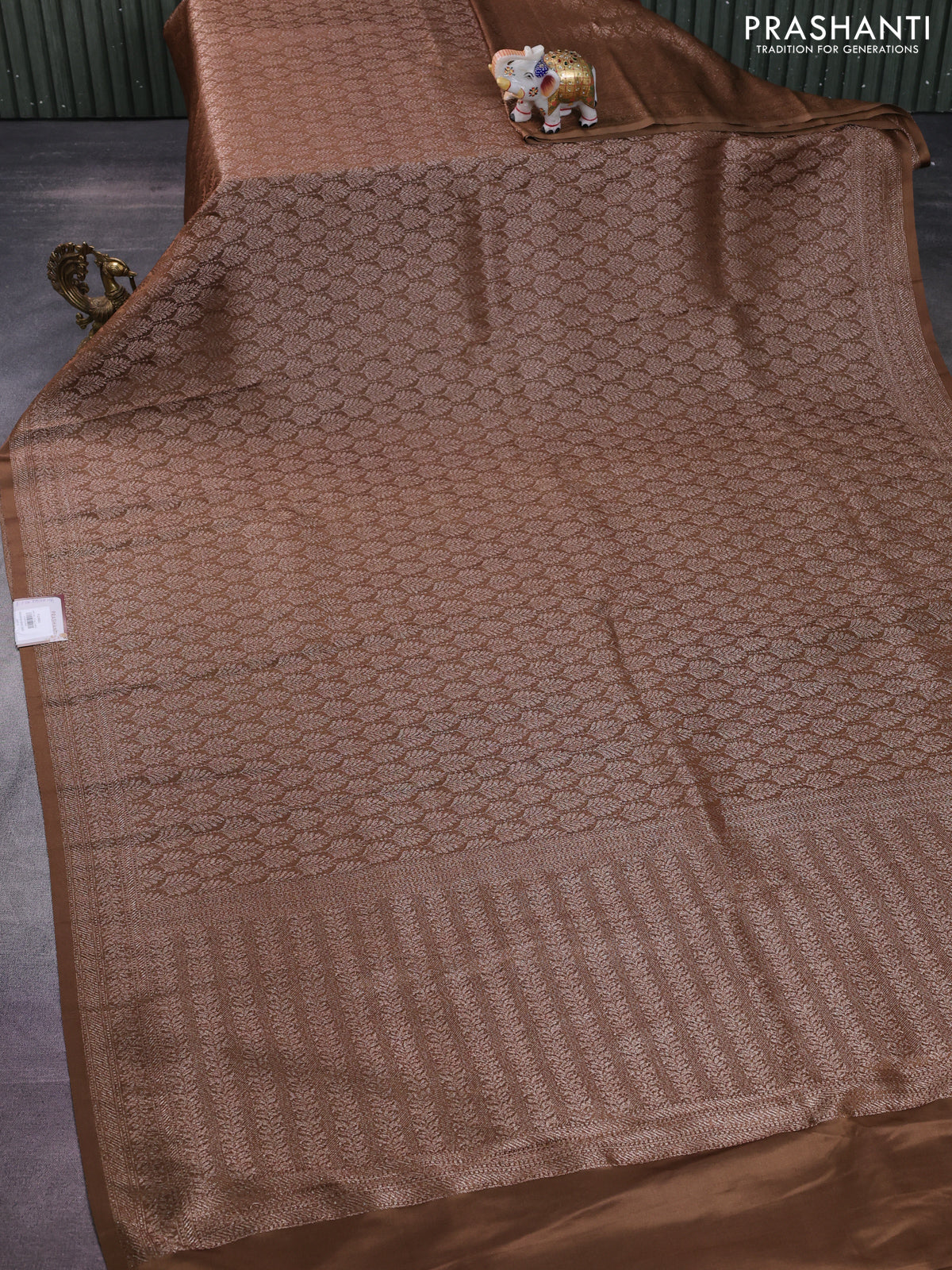 Banarasi semi crepe saree brown with allover thread & zari woven brocade weaves and woven border