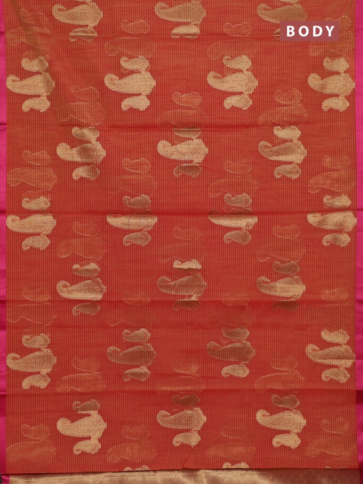 Banarasi semi dupion silk saree dual shade of orange and pink with zari woven paisley buttas and thread woven border