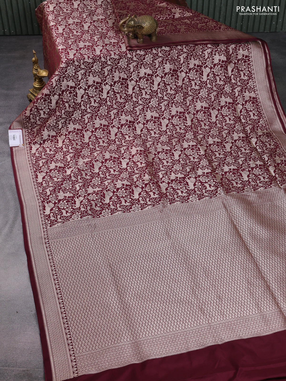 Banarasi semi katan saree deep maroon with allover vanasingaram zari weaves and woven border