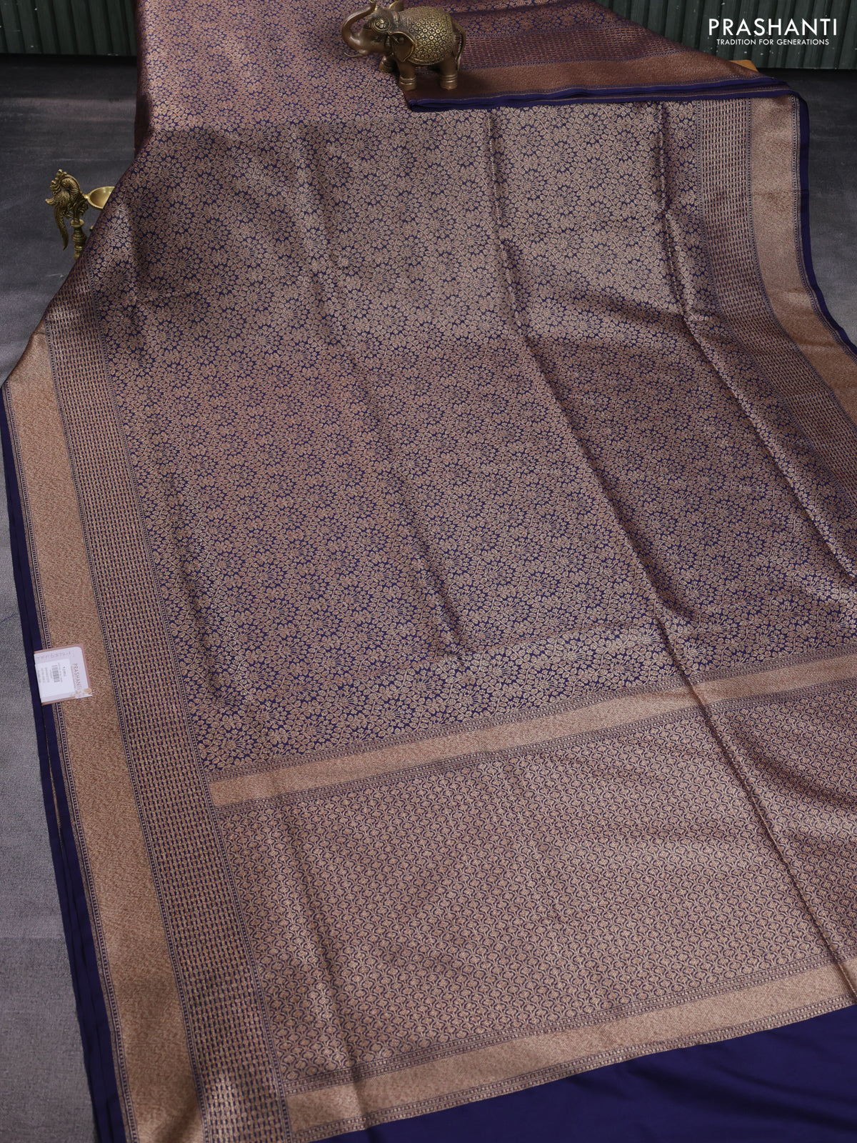 Banarasi semi katan saree navy blue with allover thread & zari brocade weaves and woven border
