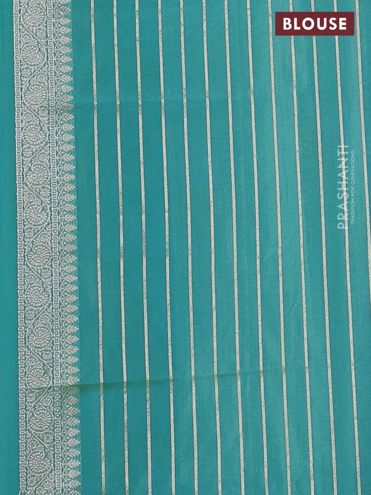 Banarasi semi katan silk saree dual shade of teal bluish green with allover zari woven buttas and rich zari woven border