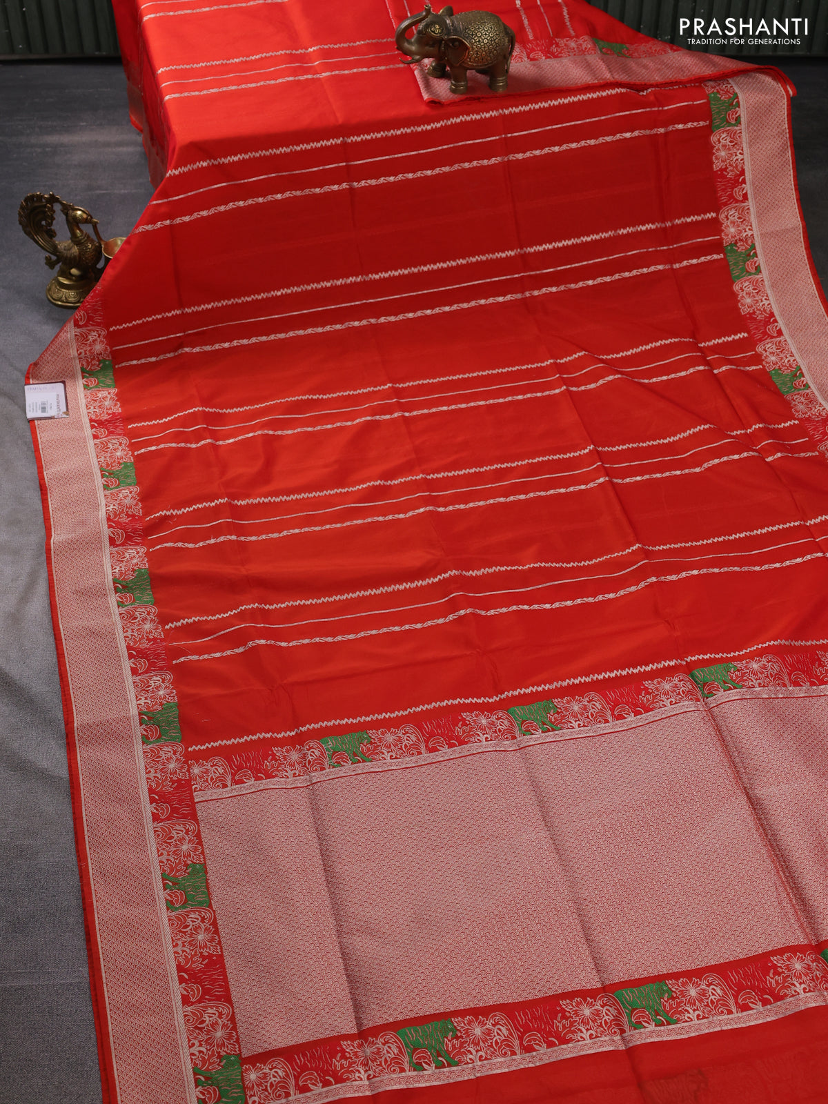 Banarasi semi katan silk saree orange with allover zari weaves and thread & zari woven border