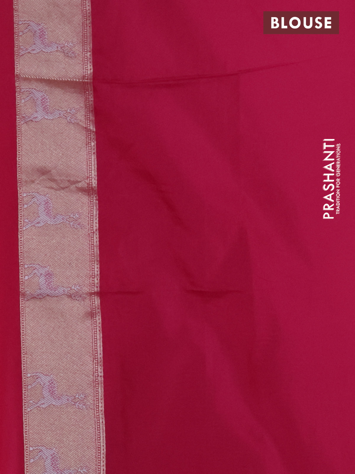 Banarasi semi katan silk saree pink with allover silver & gold zari weaves and deer design zari woven border