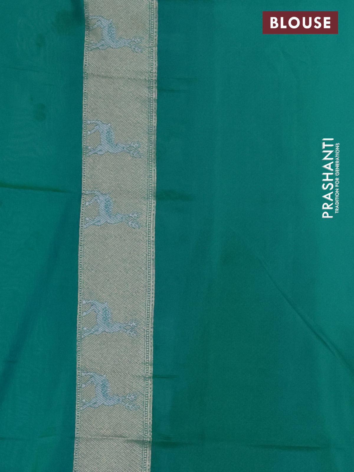 Banarasi semi katan silk saree teal green with allover silver & gold zari weaves and deer design zari woven border