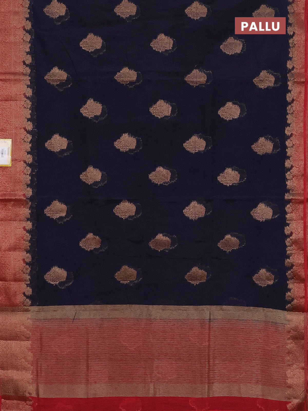 Banarasi semi matka saree navy blue and red with thread & zari woven floral buttas and banarastyle border