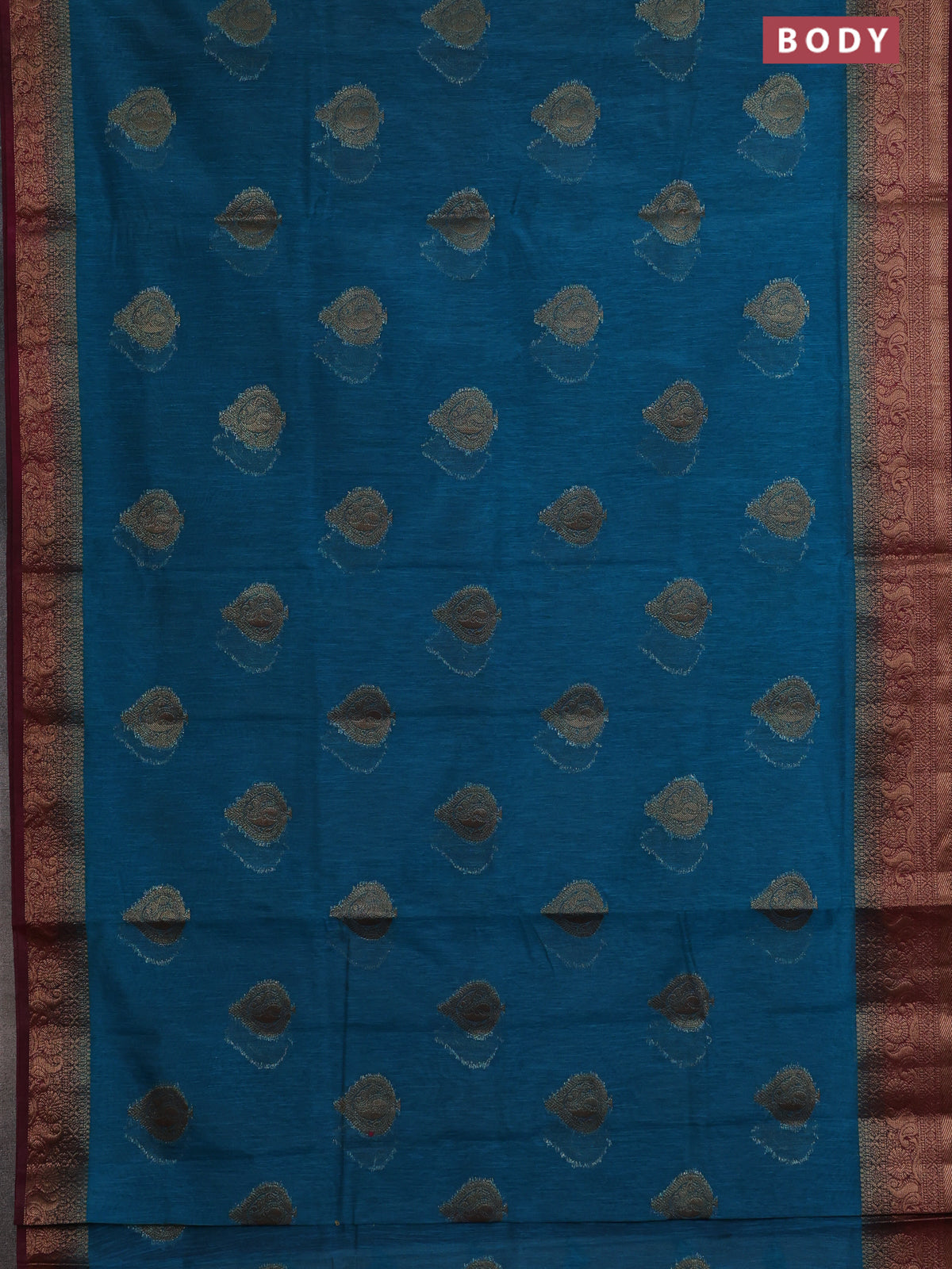 Banarasi semi matka saree teal blue and wine shade with thread & zari woven buttas and banarasi style border