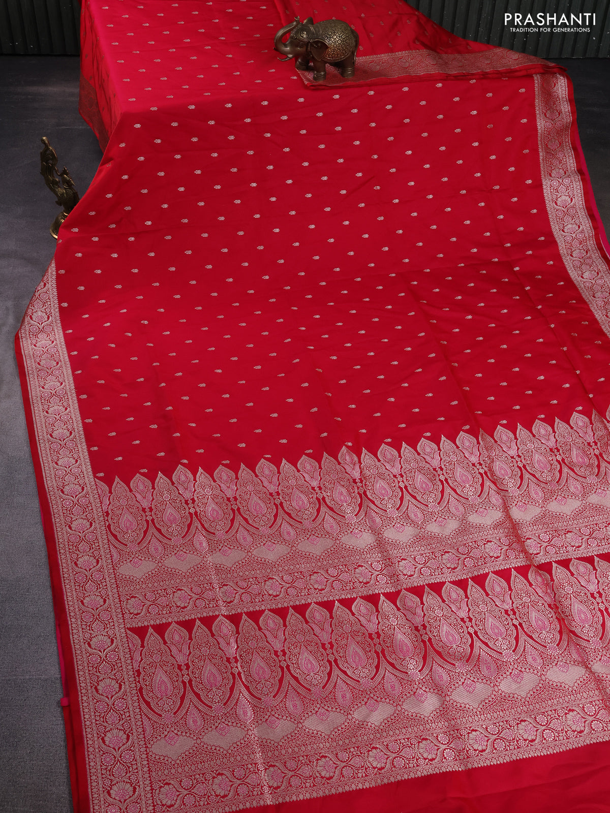 Banarasi semi mushru silk saree red with allover zari woven buttas and zari woven border