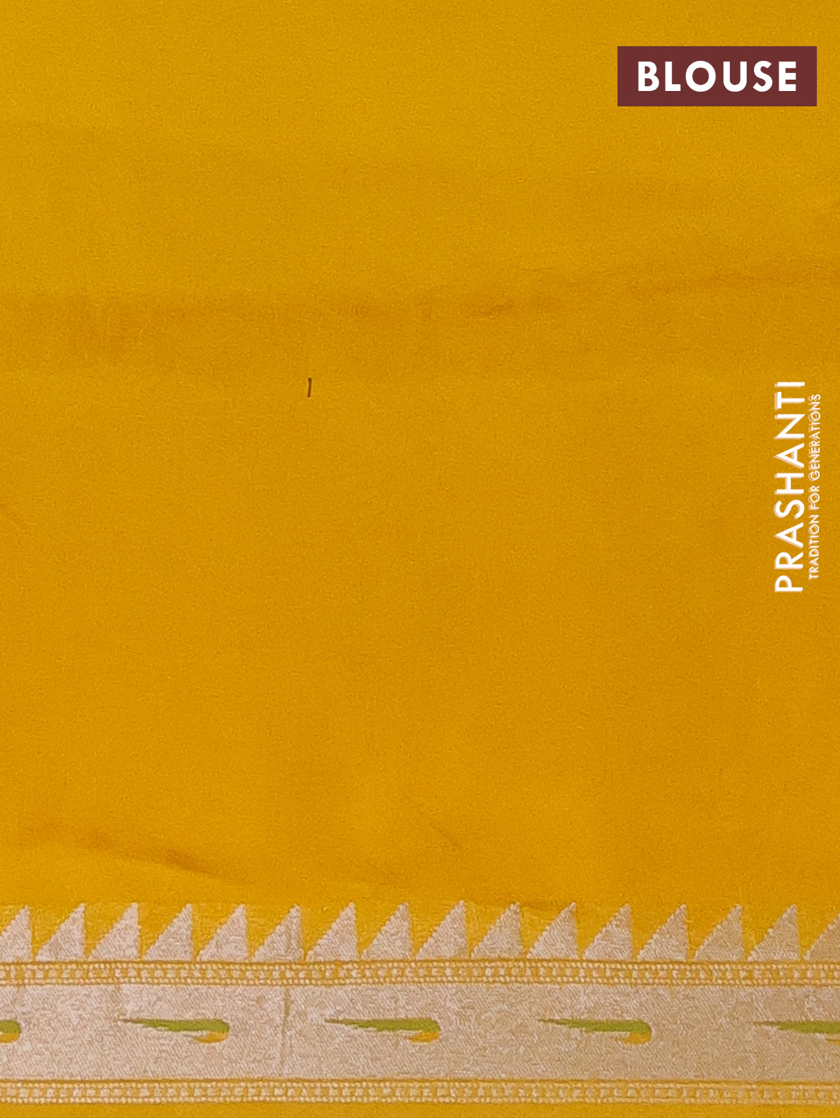 Banarasi semi raw silk saree yellow with allover silver woven brocade weaves and floral design paithani border