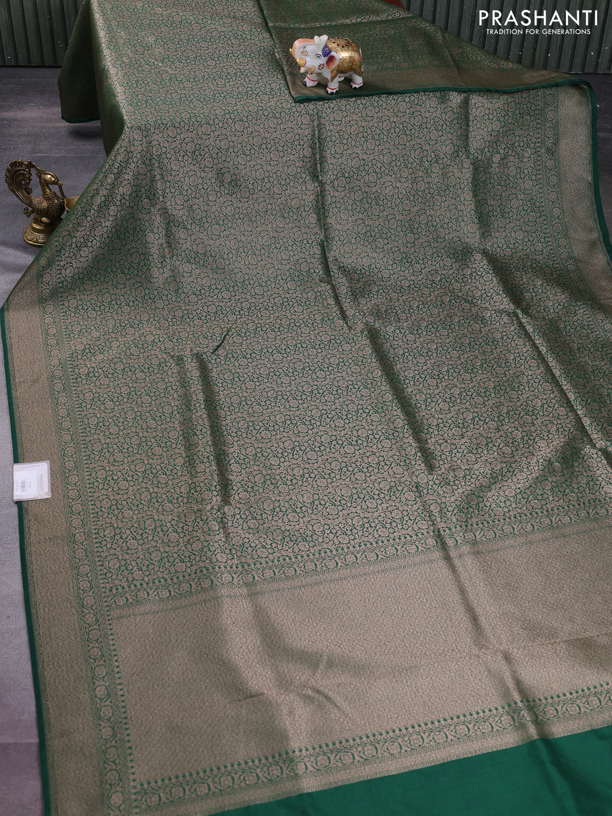 Banarasi semi silk saree green with allover thread & zari weaves and woven border
