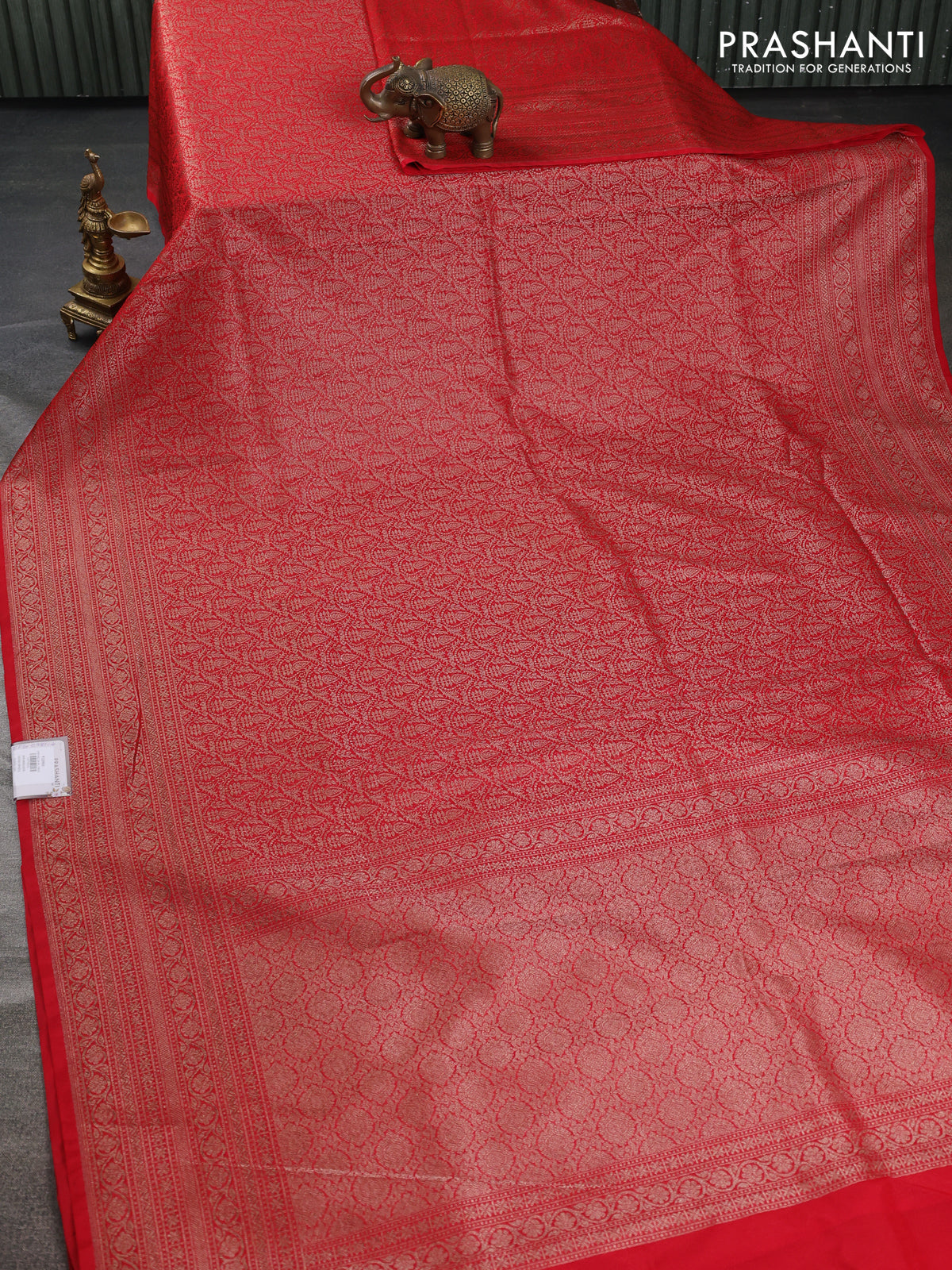 Banarasi semi silk saree red with allover thread & zari woven butta weaves and woven border