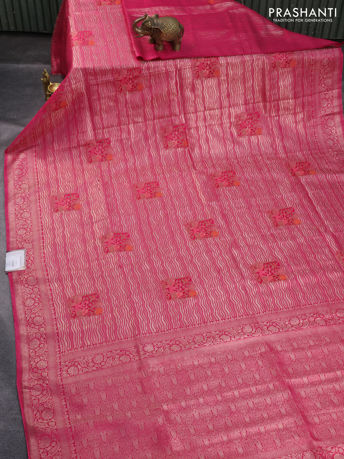 Banarasi silk saree pink with allover zari woven brocade weaves and zari woven border