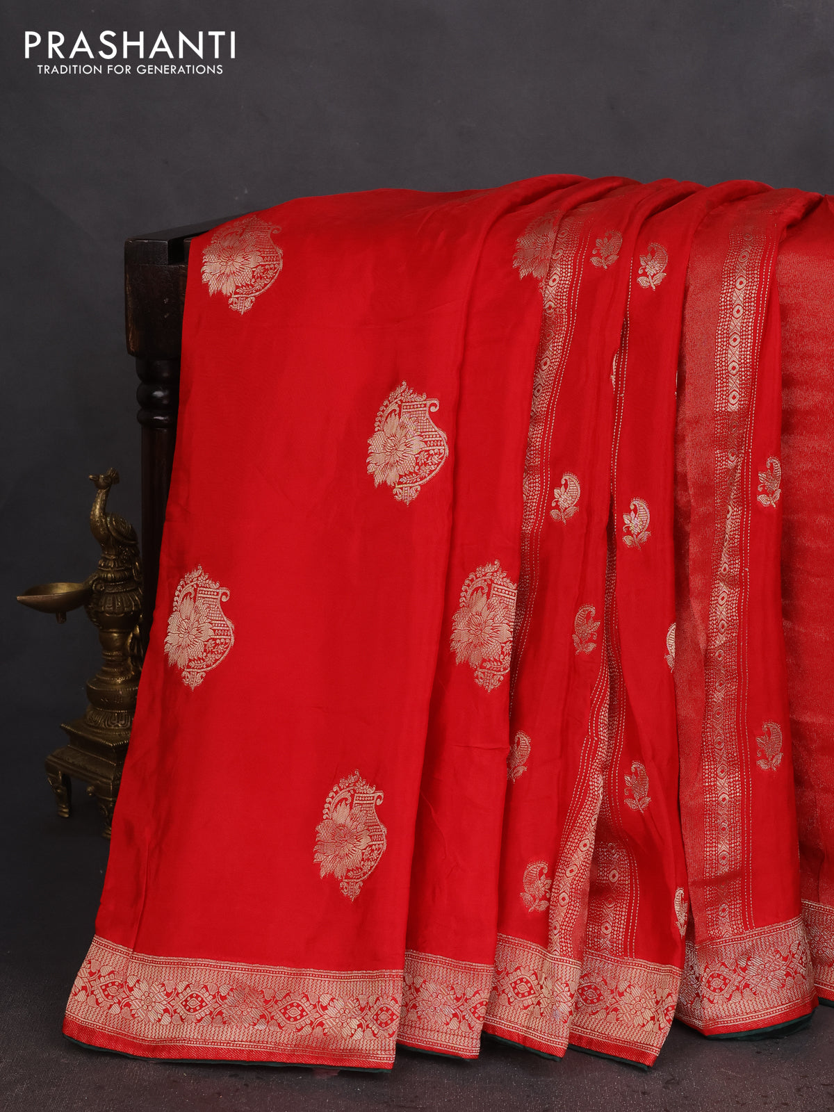 Banarasi silk saree red and green with allover zari weaves and zari woven border