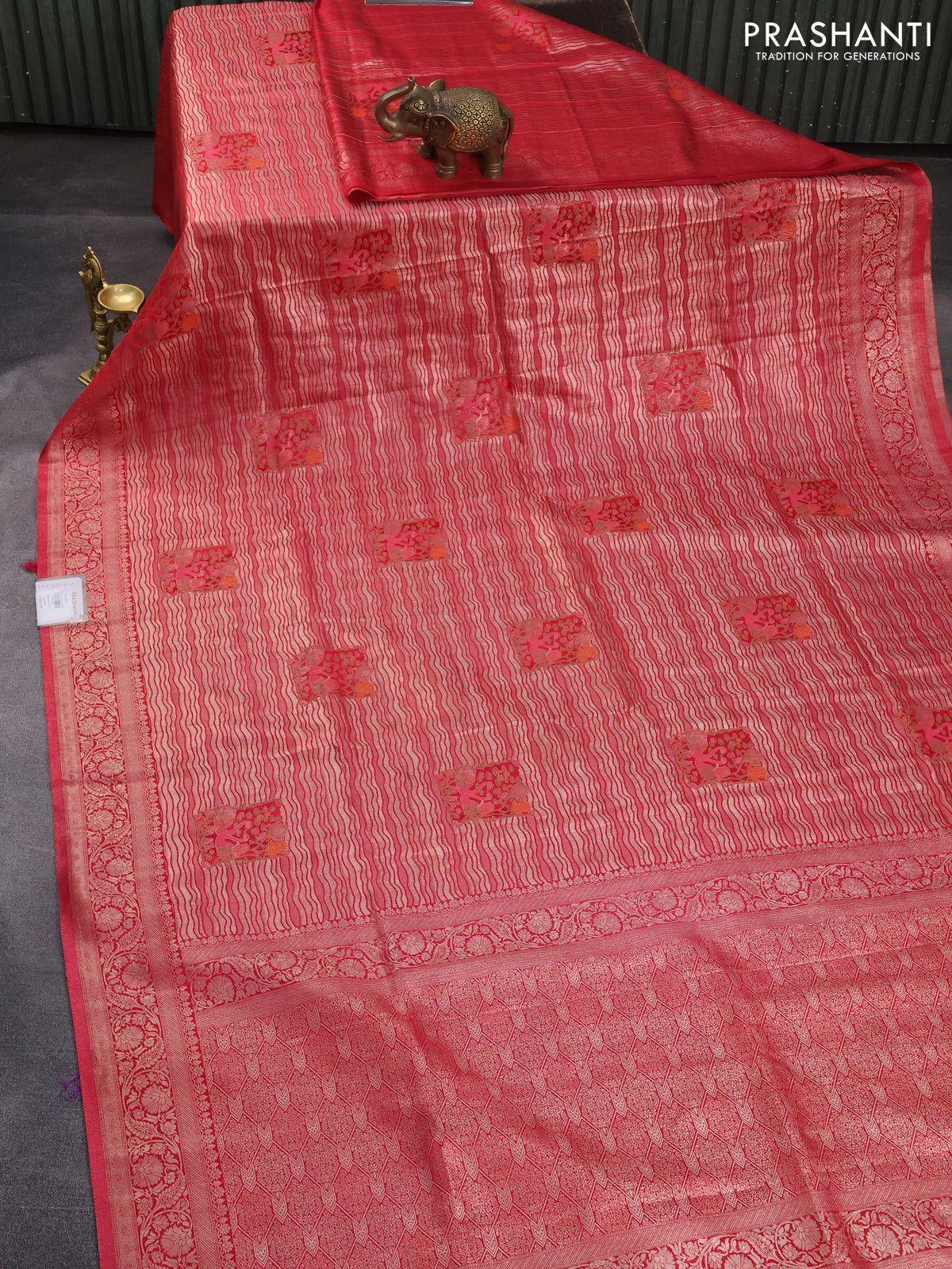 Banarasi silk saree red with allover zari woven brocade weaves and zari woven border