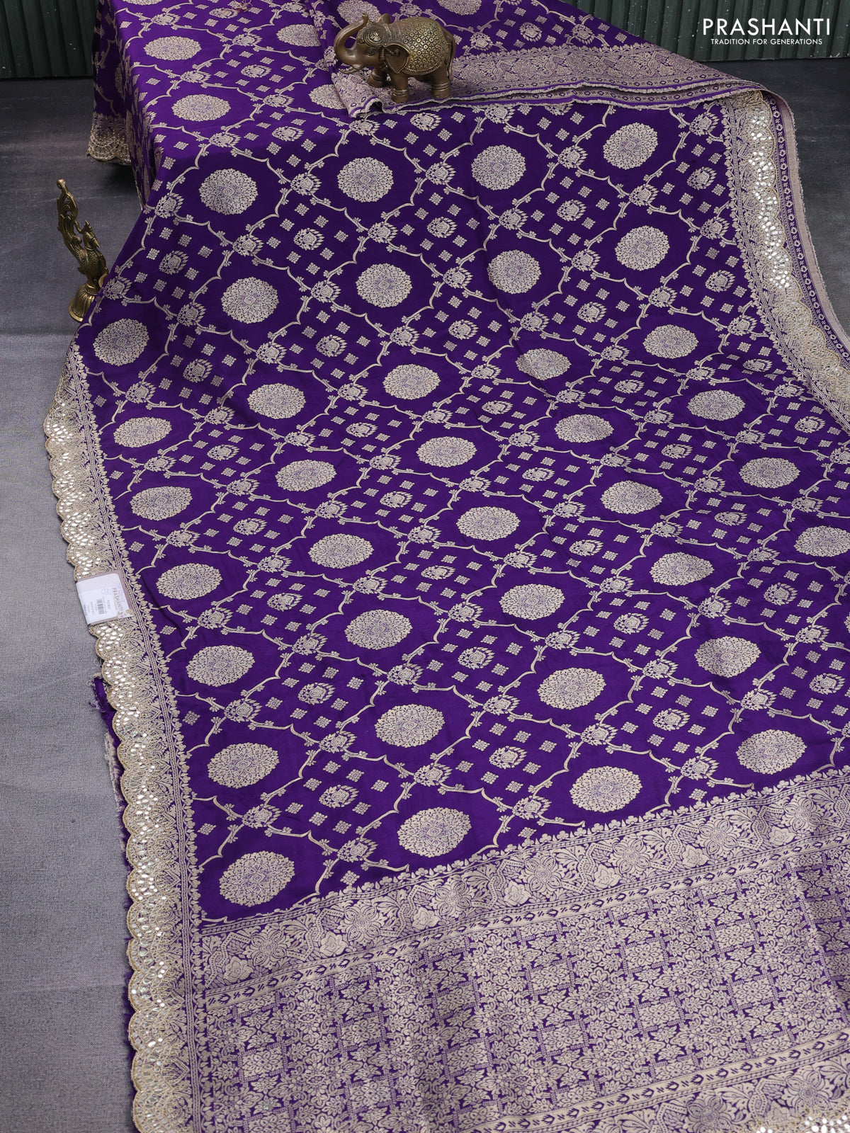 Banarasi silk saree violet with allover zari woven jaal weaves and gotapatti work border