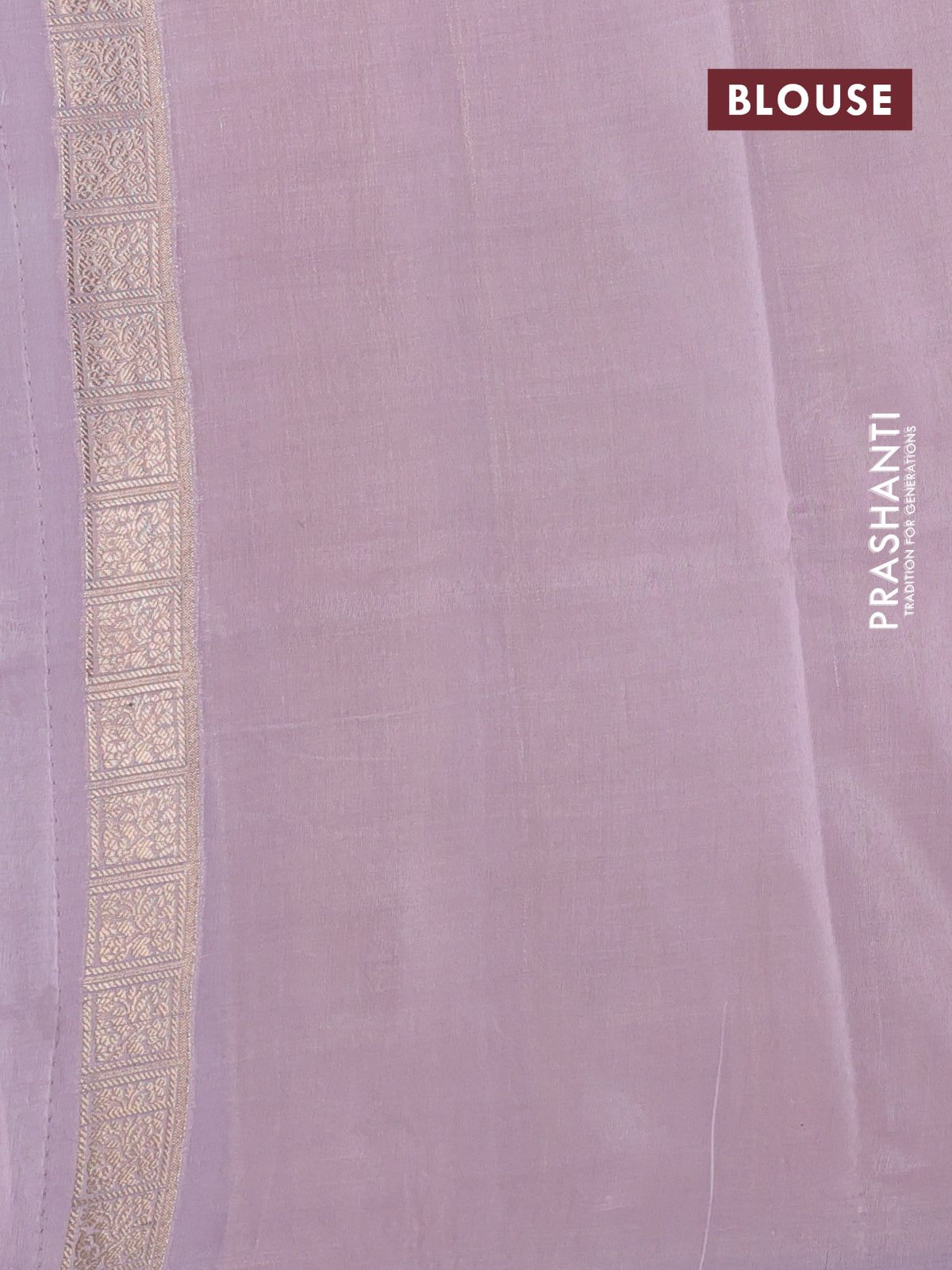 Banarasi tissue semi silk saree grey and lavender with zari weaves & floral buttas and silver zari woven butta border