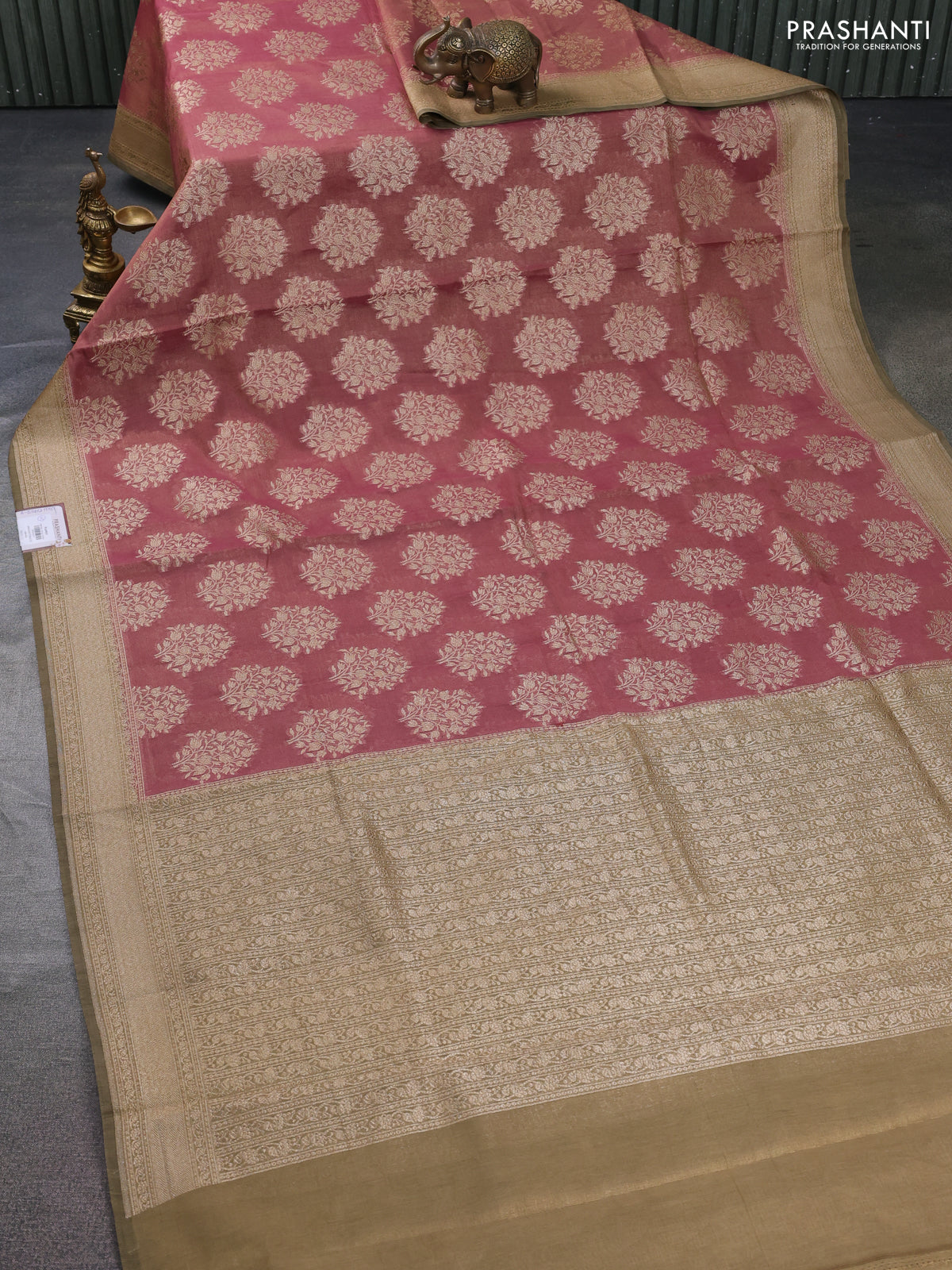 Banarasi tissue silk cotton saree pastel peach shade and elaichi green with allover thread & zari woven butta weaves and woven border