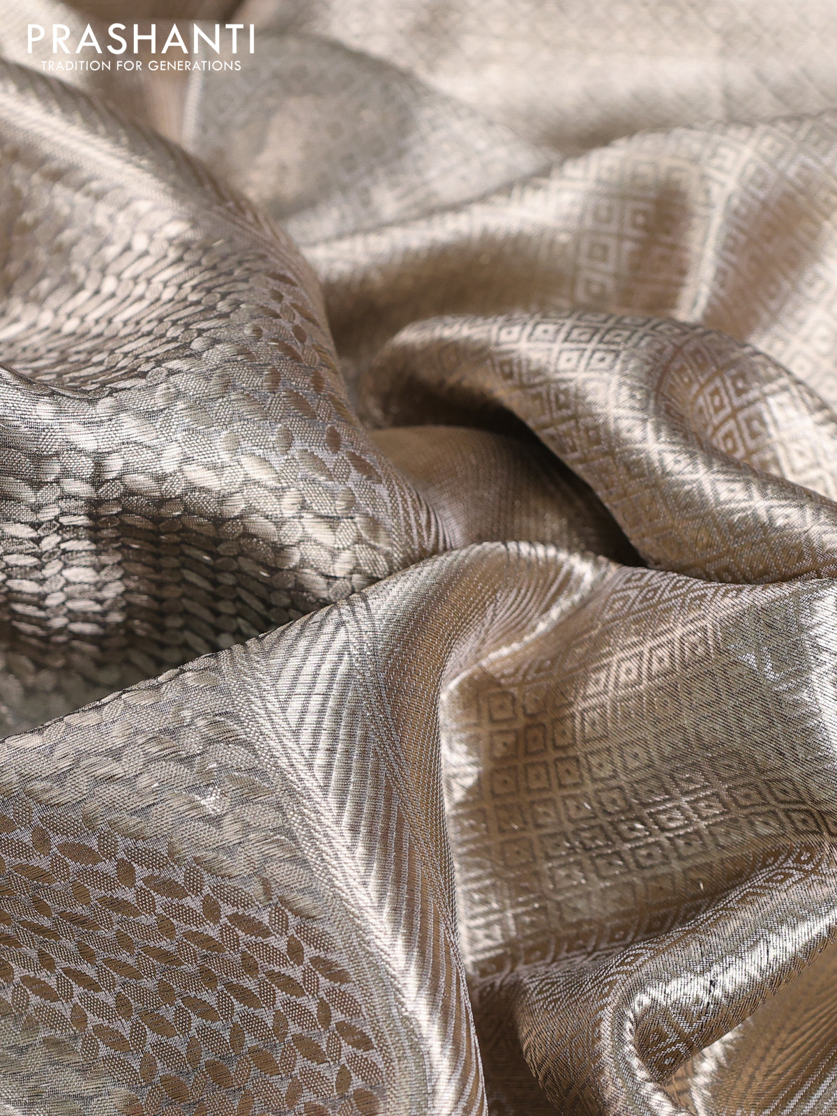 Banarasi tissue silk saree grey and black with allover zari woven brocade weaves and zari woven border